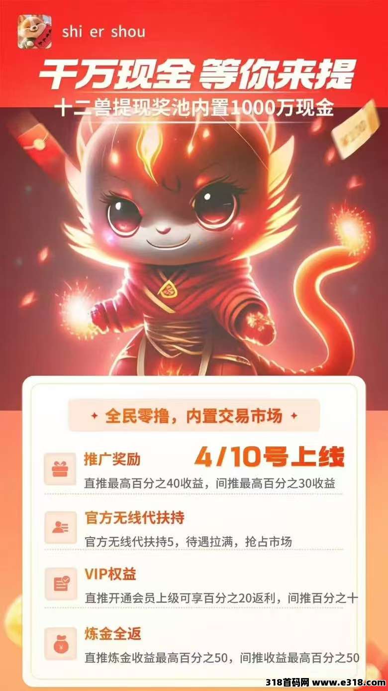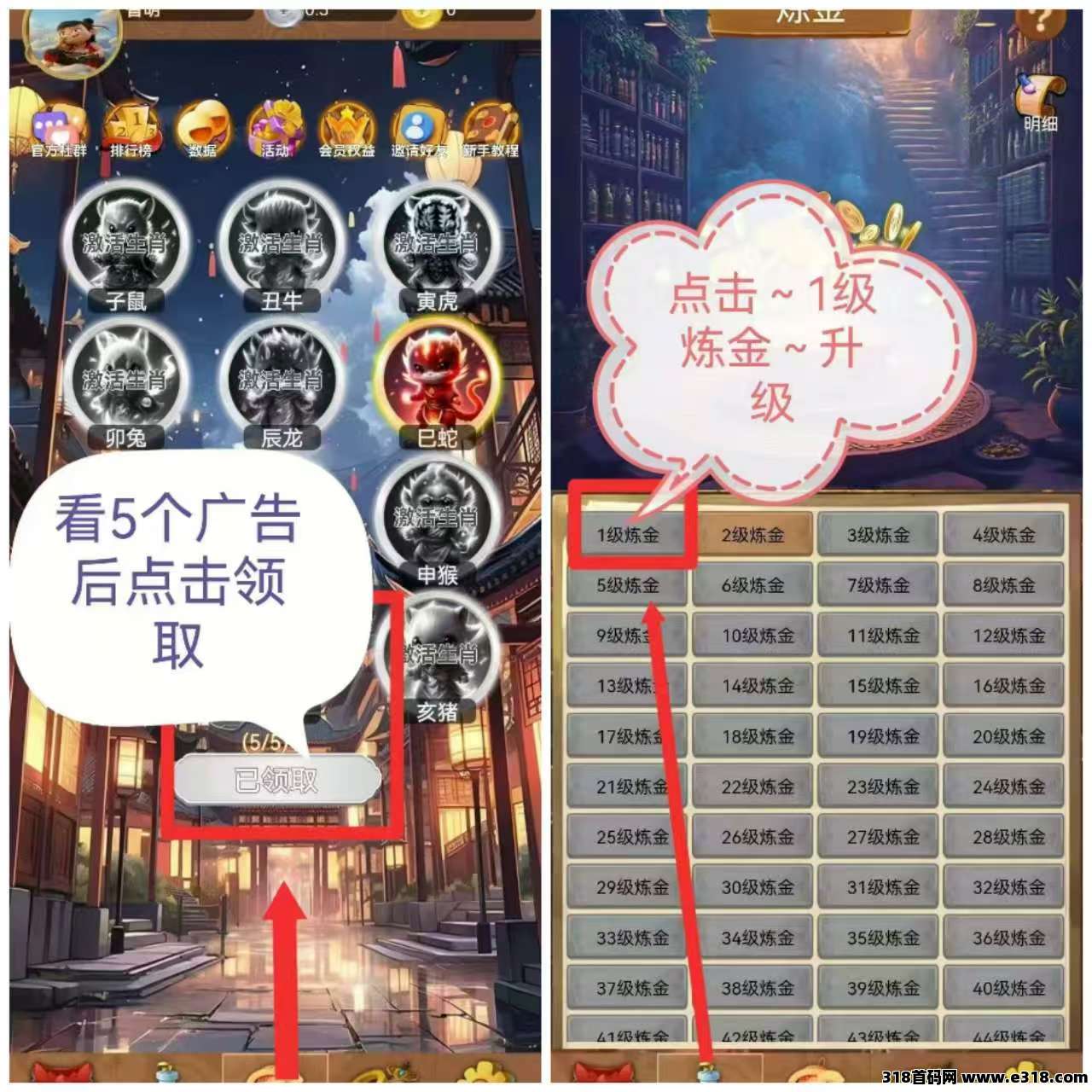 《十二兽》爬楼模式,注册送蛇生肖产银币,1银币1米,全新0撸游戏爬楼模式,无悬赏,无试玩,无任何充值