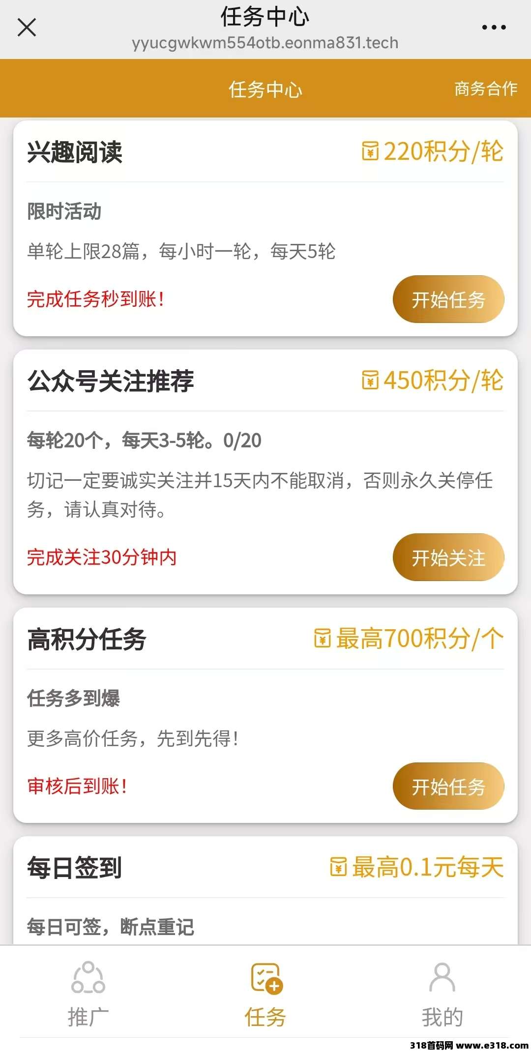 满1元可提,每一轮任务0.22-0.45元,高积分任务0.7一个,空闲,上下班时间,碎片时间做下就行