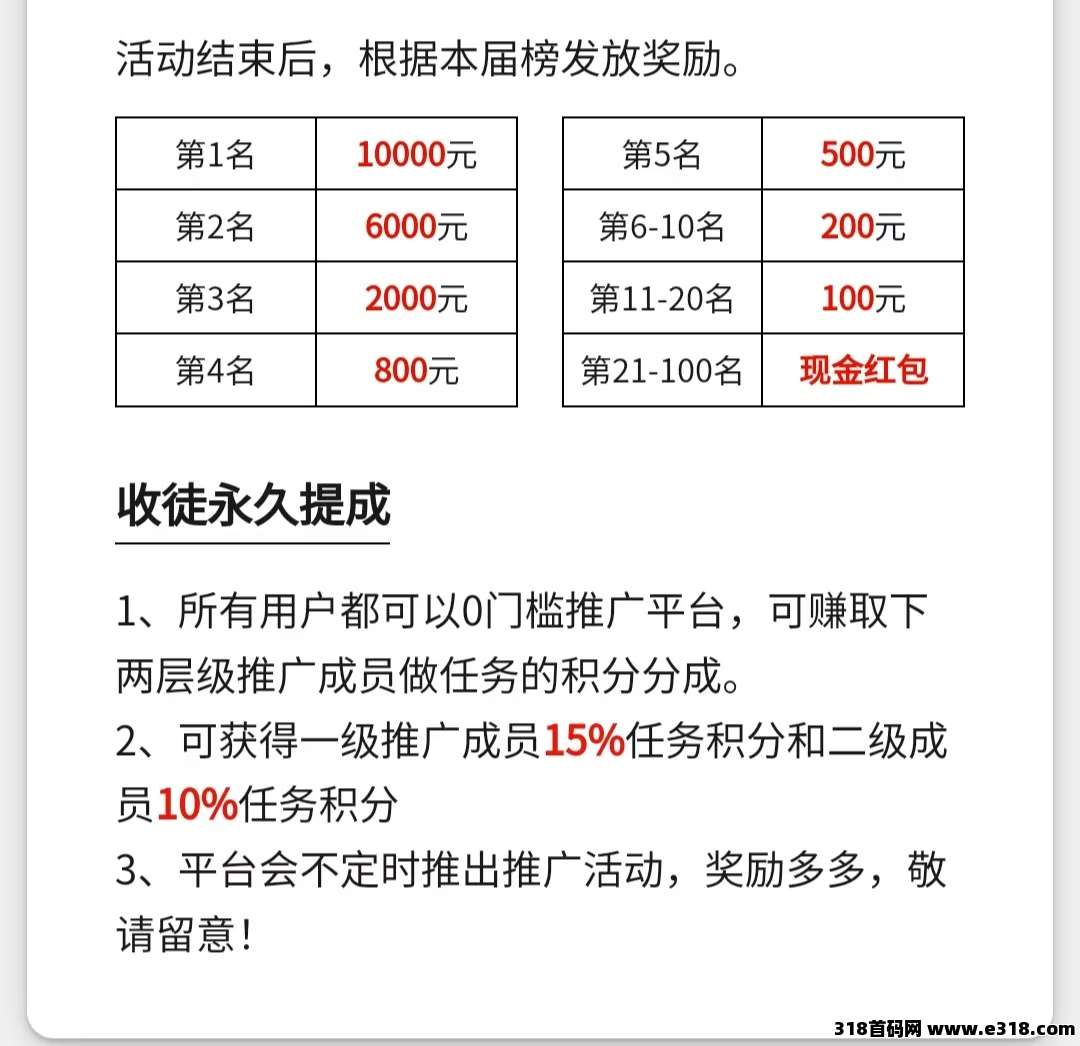 推广收益才是平台的核心玩法,团队长们的福音。直接躺赚