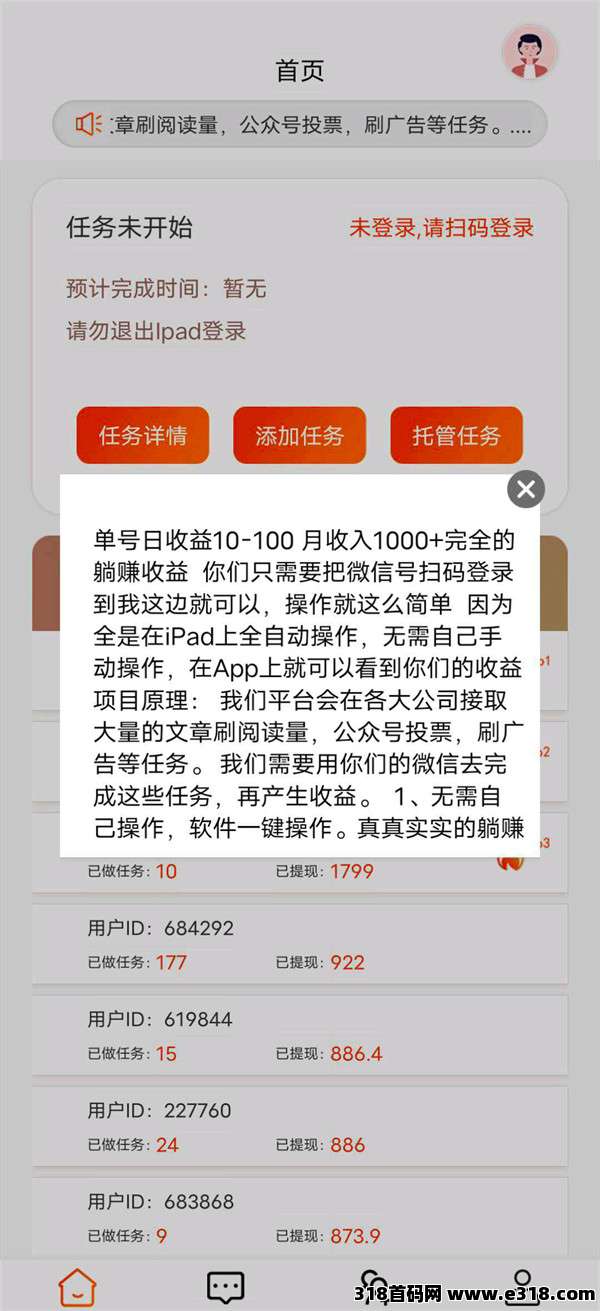 “易赚宝”是一款专注于海外内容浏览与广告视频观看的高效自动化盈利项目。通过单设备操作,日收入可稳定在400至700元,同时支持多设备批量运行,收益潜力巨大。