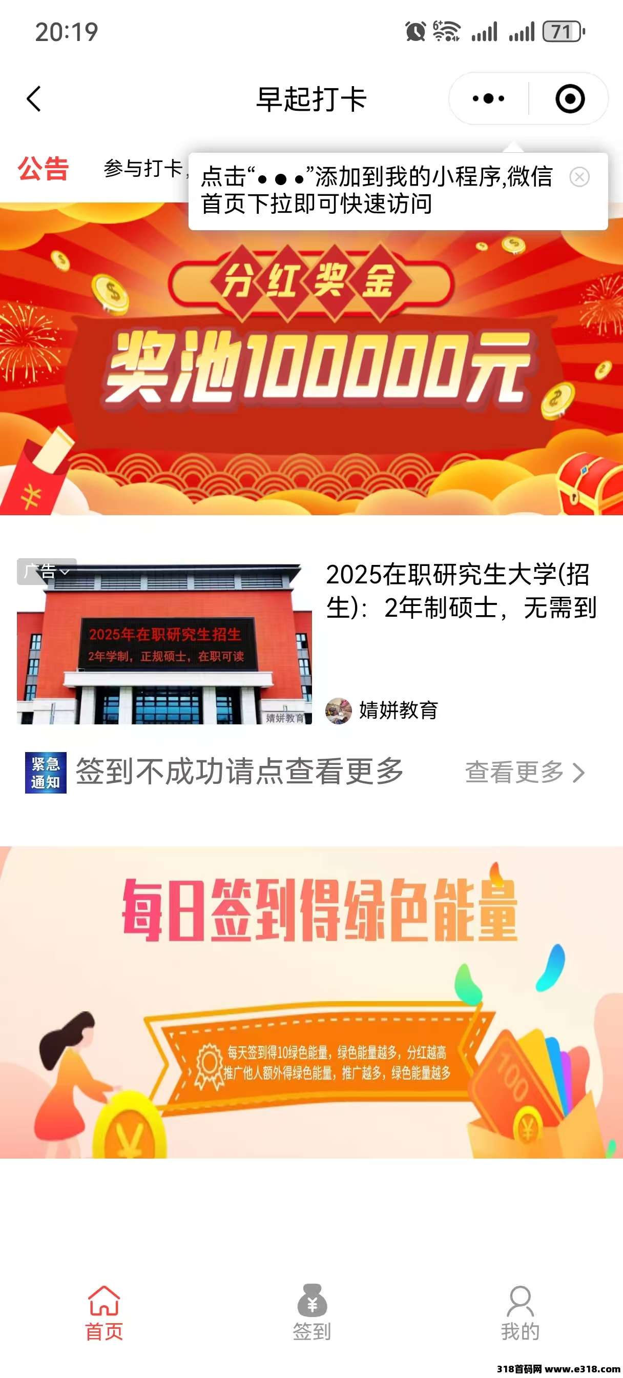 ①每天3个广告,10绿色能量(会员达10万人开启**,平台拿出80%广告利润开始**)