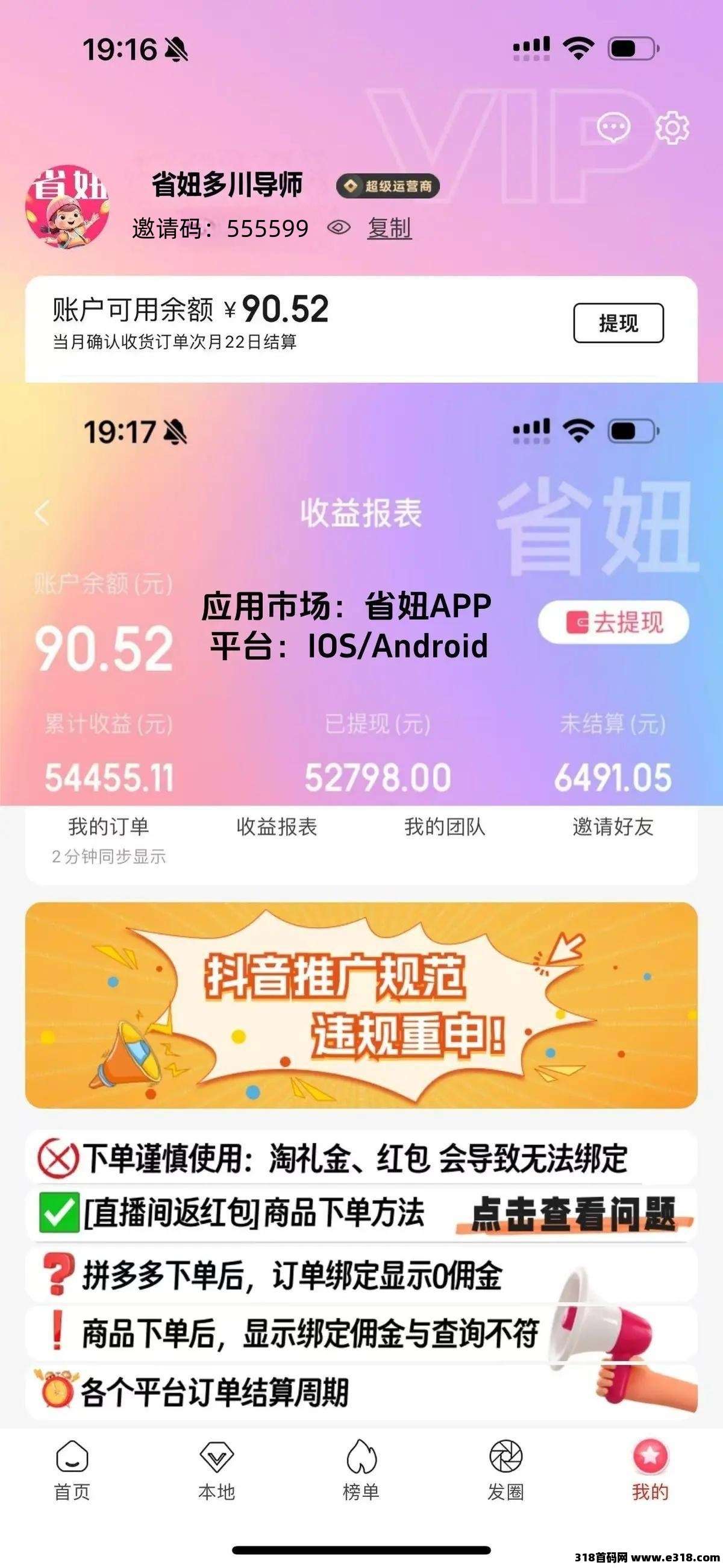 大家好!我是省妞官方 + 联合最大创始人多川导师,省妞直升团长邀请码是 555599 我之所以钟情于省妞 app,原因很简单,它有着更高的佣金、更优的模式,而且能保证终端用户不流失。