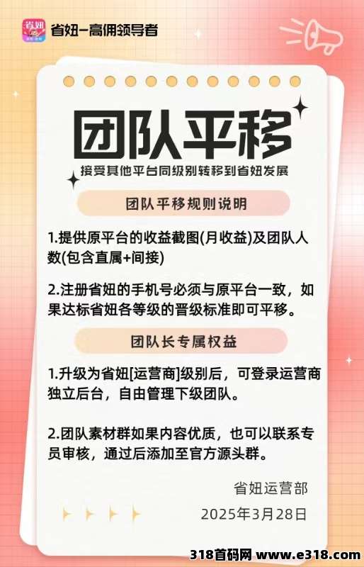 发展下级:团长可自定义邀请码 + 团队分佣 5%(**)省妞佣金高 c 端稳定发展!