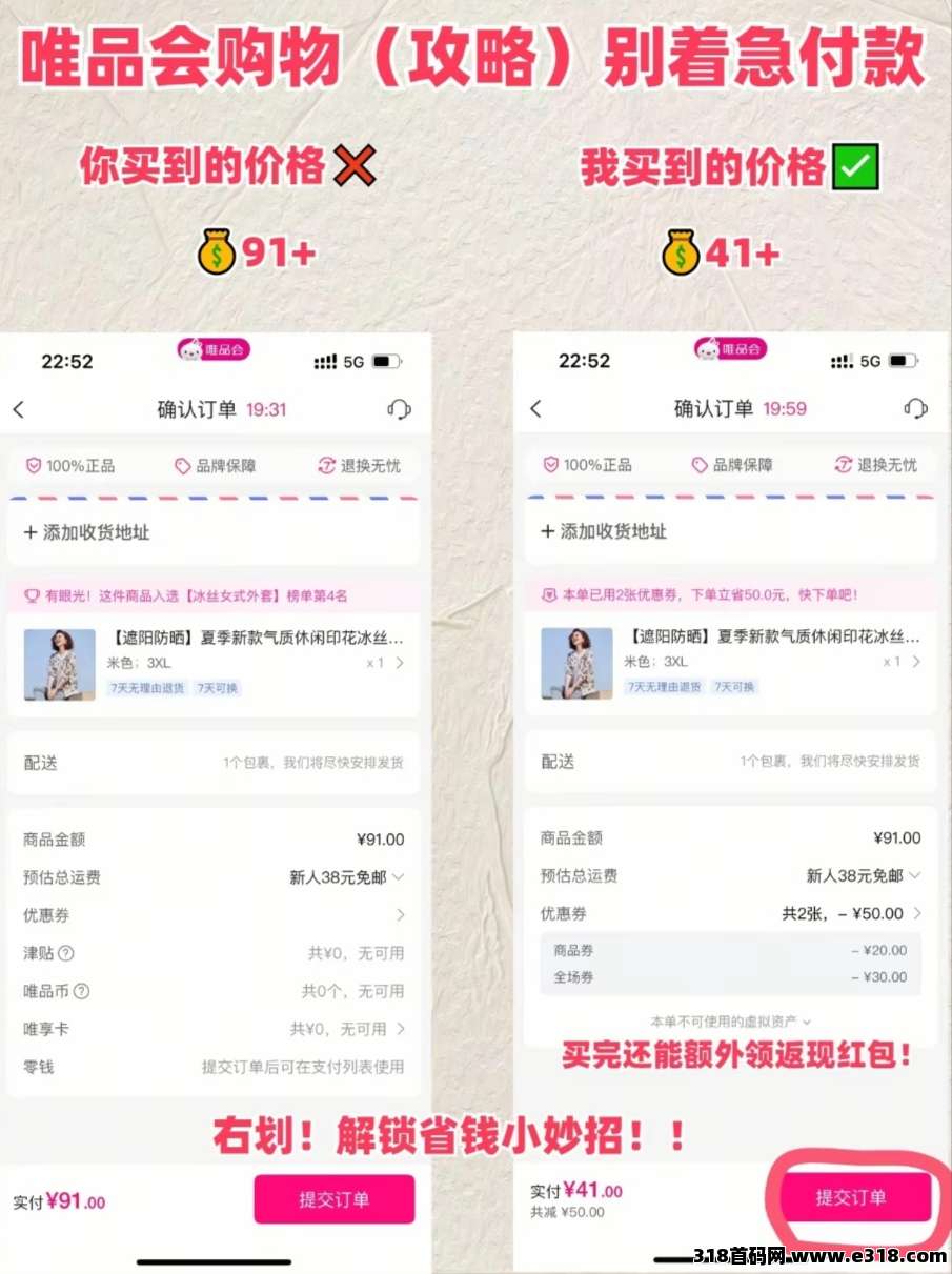 3. 操作简单到哭,3步搞定! 下载省妞返利APP → 搜索“唯品会”找到心仪商品 → 点击下单,返利自动到账! 全程无套路,新人还有专属福利,手残党也能轻松薅羊毛~
