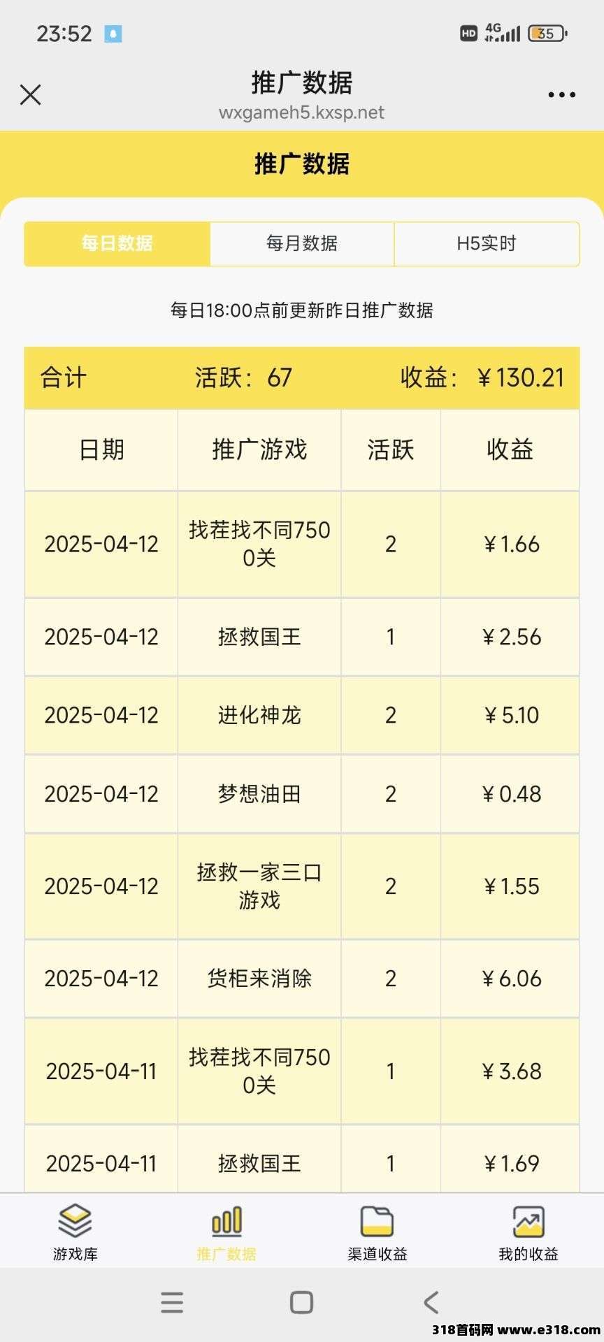 2. 广告并提高广告收益的注意事项:申请6款广告类型的小游戏,每个游戏看10个左右广告,中间最好点击其中一个广告的内容进去看详情(提高转化率)看广告一定要看完整30秒,不要中途取消,会得不到广告收益。一个微信不要频繁看广告,间隔5-10分钟一个广告比较好。第二天18:00点之前 更新收益