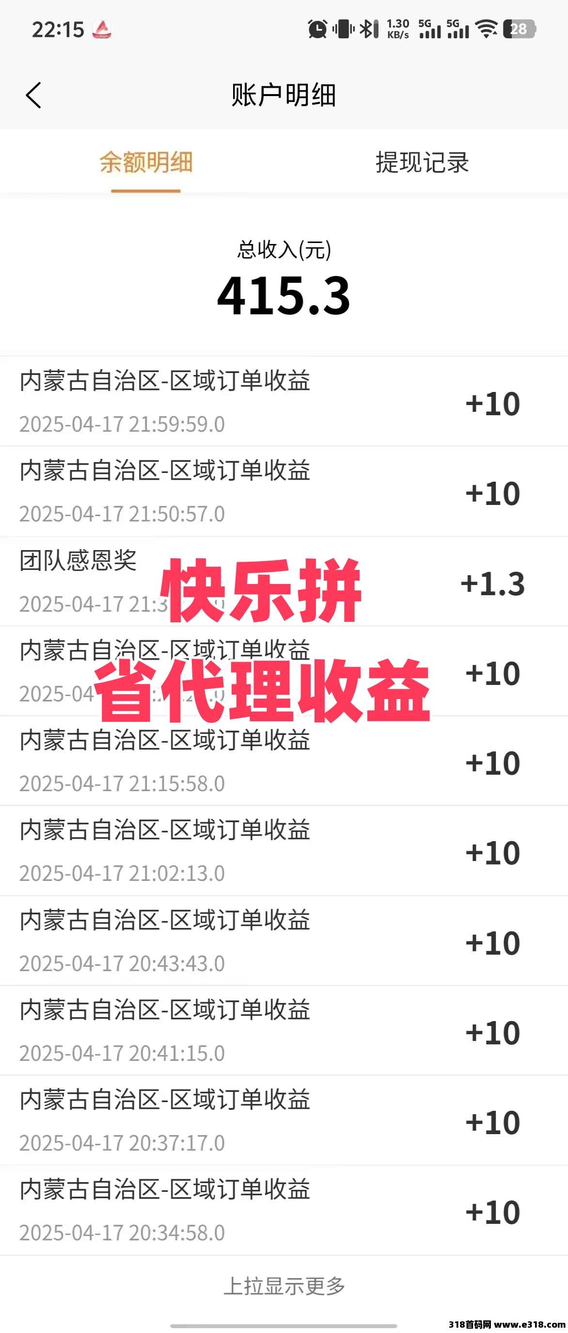 【快乐拼】福利拉满,来就送省代理,拿团队长期管道收益!