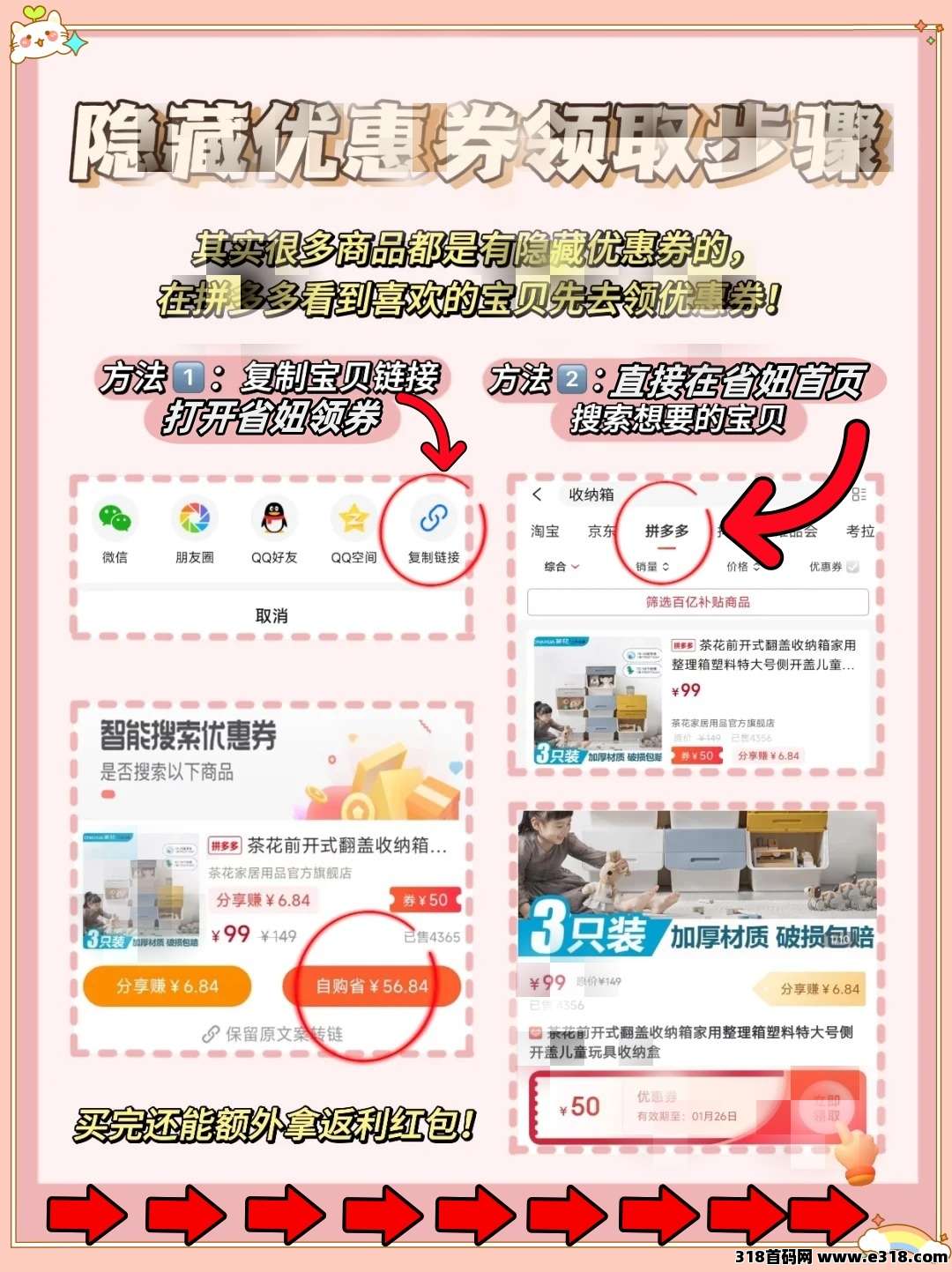 家人们谁懂啊!原来在拼多多购物前多做这一步,直接省下一杯奶茶钱!今天手把手教你用省妞搞定隐藏优惠,手残党也能秒变省钱达人,学会后再也不乱花冤枉钱啦~ 3 步搞定隐藏优惠券 + 返利!超简单攻略看图抄作业复制拼多多商品链接找到想买的宝贝,点击 “分享”“复制链接”,轻松 get 链接(图 附操作示意图)~打开省妞粘贴链接打开省妞 APP,粘贴链接到搜索栏,自动弹出「隐藏优惠券 + 返利入口」(图 手把手标重点!)输入邀请码 “未央导师:877877” 领券下单点击领取大额券,下单后还能额外拿返利红包!实测一单能省 10-50 元,买得越多省得越爽~ 为什么一定要试试?这 3 个理由太香了! 隐藏券比店铺直接领的大!随便搜了件连衣裙,店铺券减 20,这里直接减 50!半价买大牌真的不是梦~ 返利秒到账,无套路!下单后返利自动算进账户,攒够就能提现,四舍五入等于白捡钱啊家人们! 全品类通用,新手 0 门槛!不管是日用品、零食还是家电,只要复制链接到省妞都能用,未央导师邀请码 877877 直接解锁福利,连妈妈都会用~ 省钱 Tips 划重点!学生党 / 打工人必看买前先查券,哪怕是 9.9 包邮的小东西也能再省 2 块大促期间叠加平台满减,折上折直接薅秃商家省妞填写未央导师邀请码:877877,带你玩转 618、双 11~现在跟着我念:“省妞 + 邀请码 = 拼多多省钱密码!” 学会的宝子快 @你的冤种姐妹一起薅羊毛,从此购物车随便加都不心疼~