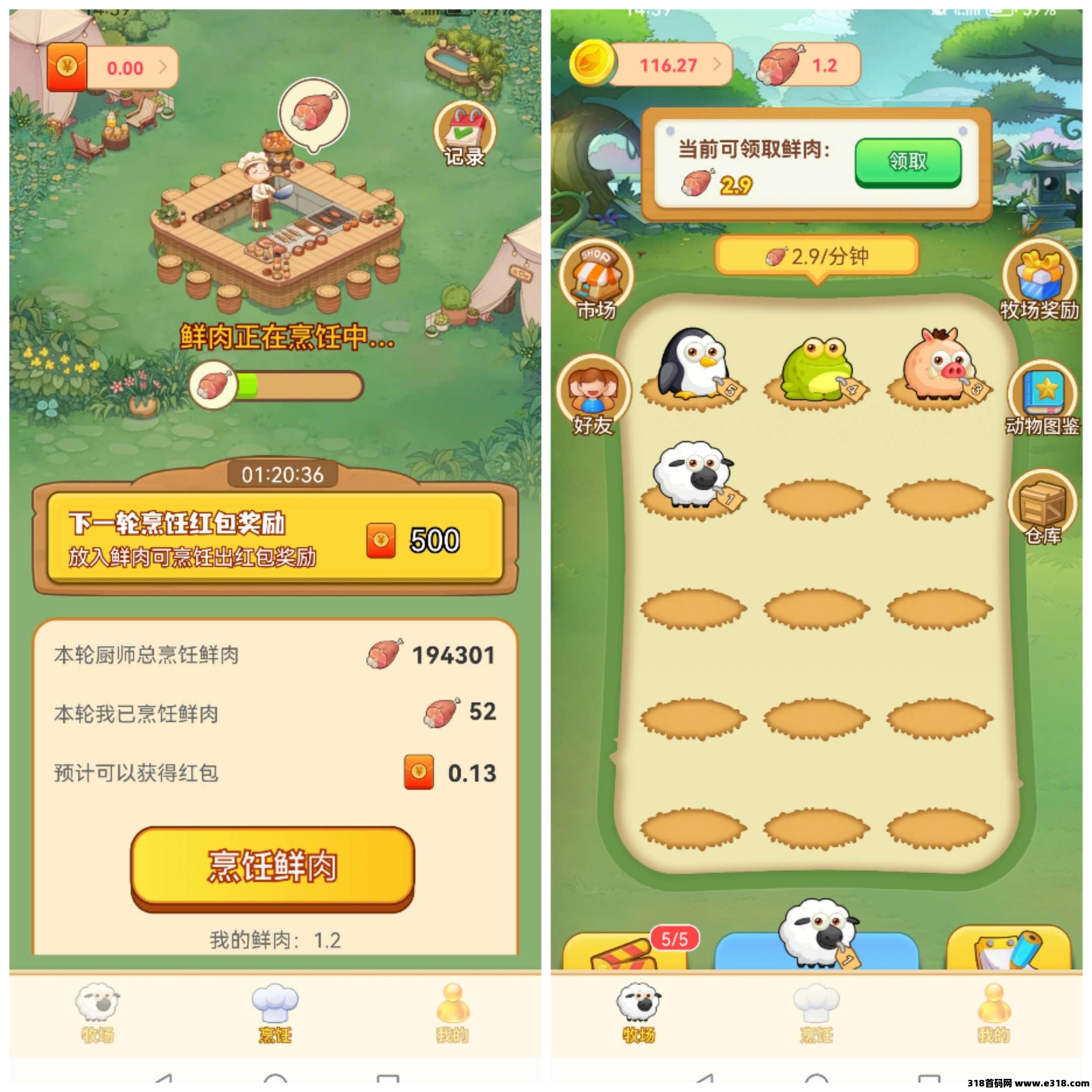 用金币买动物,动物越多 ,合成的动物越多 ,有几率获得神兽 ,每分钟产出的鲜肉就越多 ,鲜肉可以投入工厂 领取红包,(注意重点 ,工厂每天的红包都会提高 ,意思就是你第一天有可能是500块 ,第二天就是600 ,以此类推 ),鲜肉越多 ,提的钱越多 ,金币可以邀请好友,看广告 都可以获得 ,每天喂养5次才可以领取鲜肉哦!动物就是印钞机, 鲜肉就是钱 ,鲜肉也可以去兑换金币,再去买动物 ,正向循环,每一天的收益都再提高