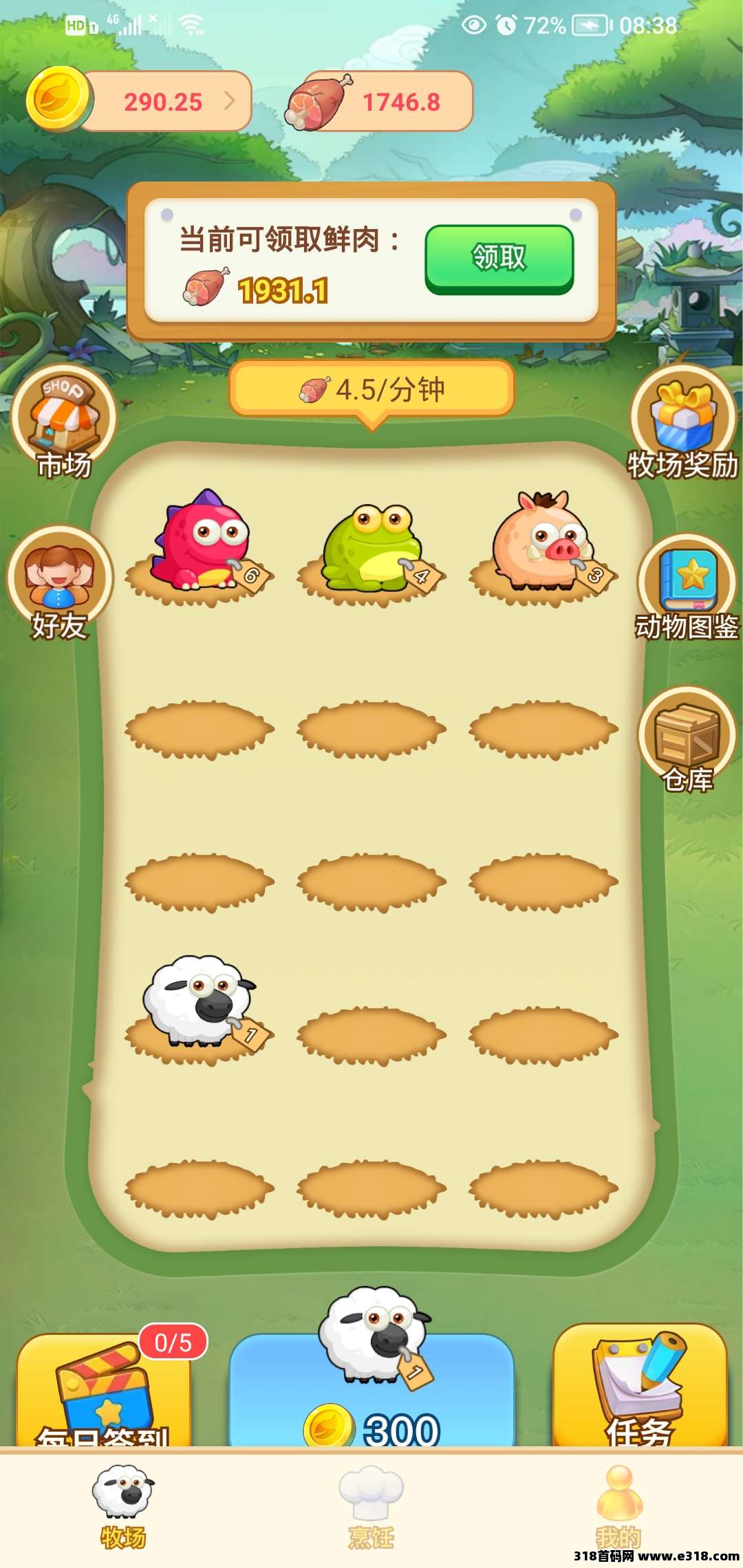 好转牧场首码!牧场模式新颖!注册送5000金必!每天5广告!0.2起提。亲测秒到