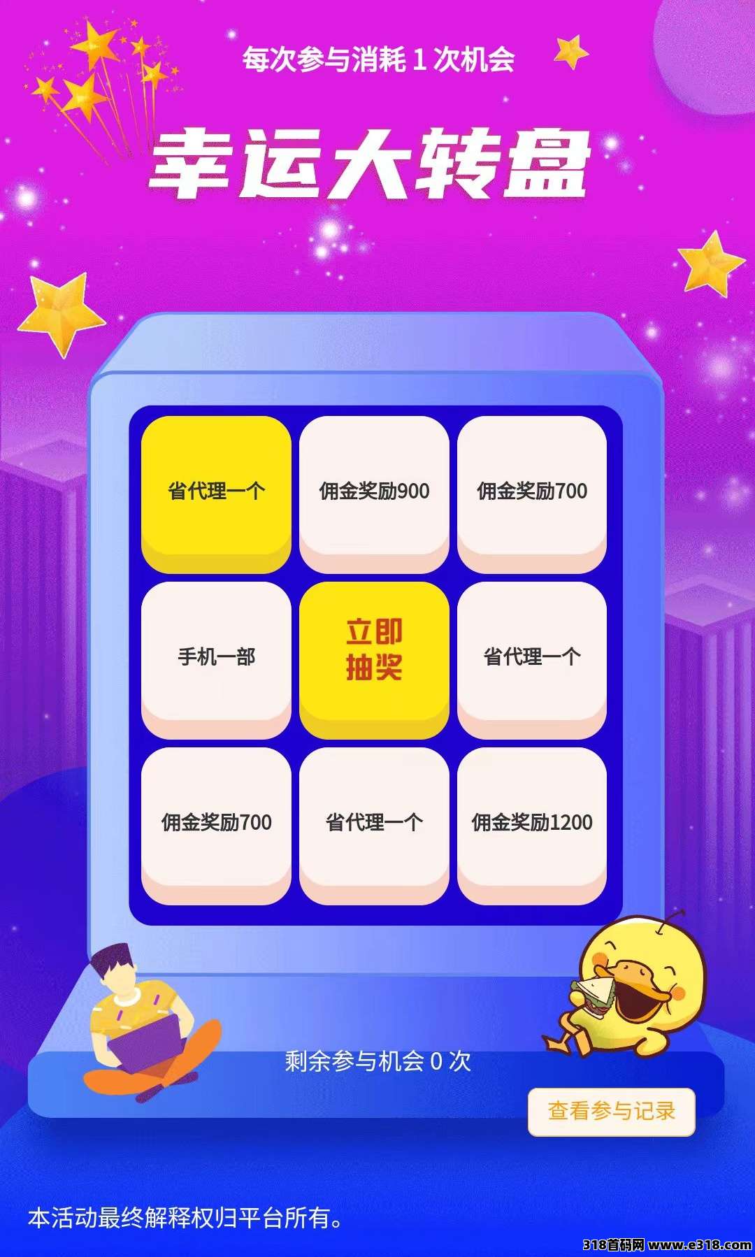 抽到现金可直接提现,抽到省代可以永久拿全省订单奖励,有长期管道收益!