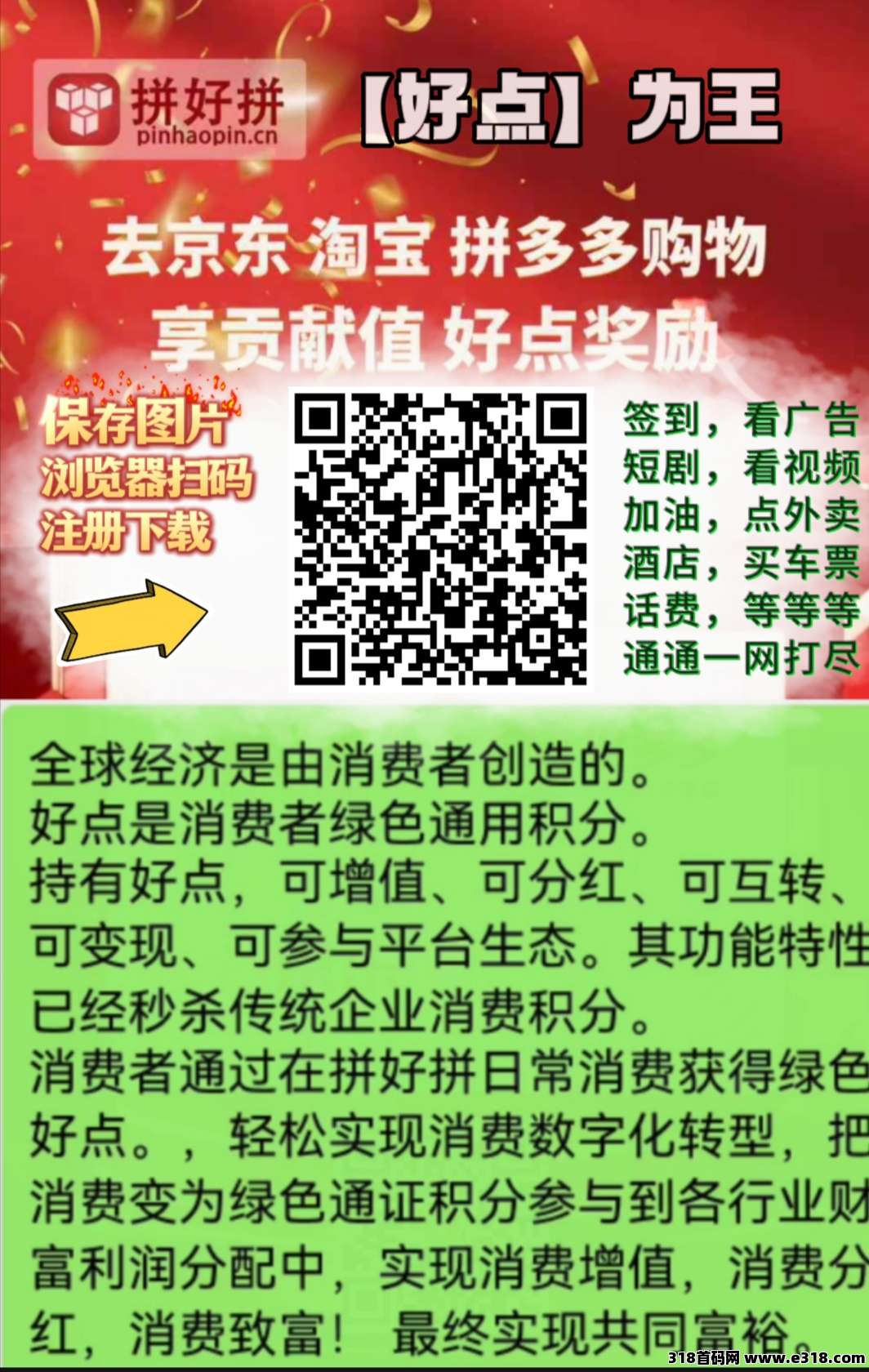 总之,你在拼好拼的任何贡献,都会以绿色消费积分“好点”给你公平记账。