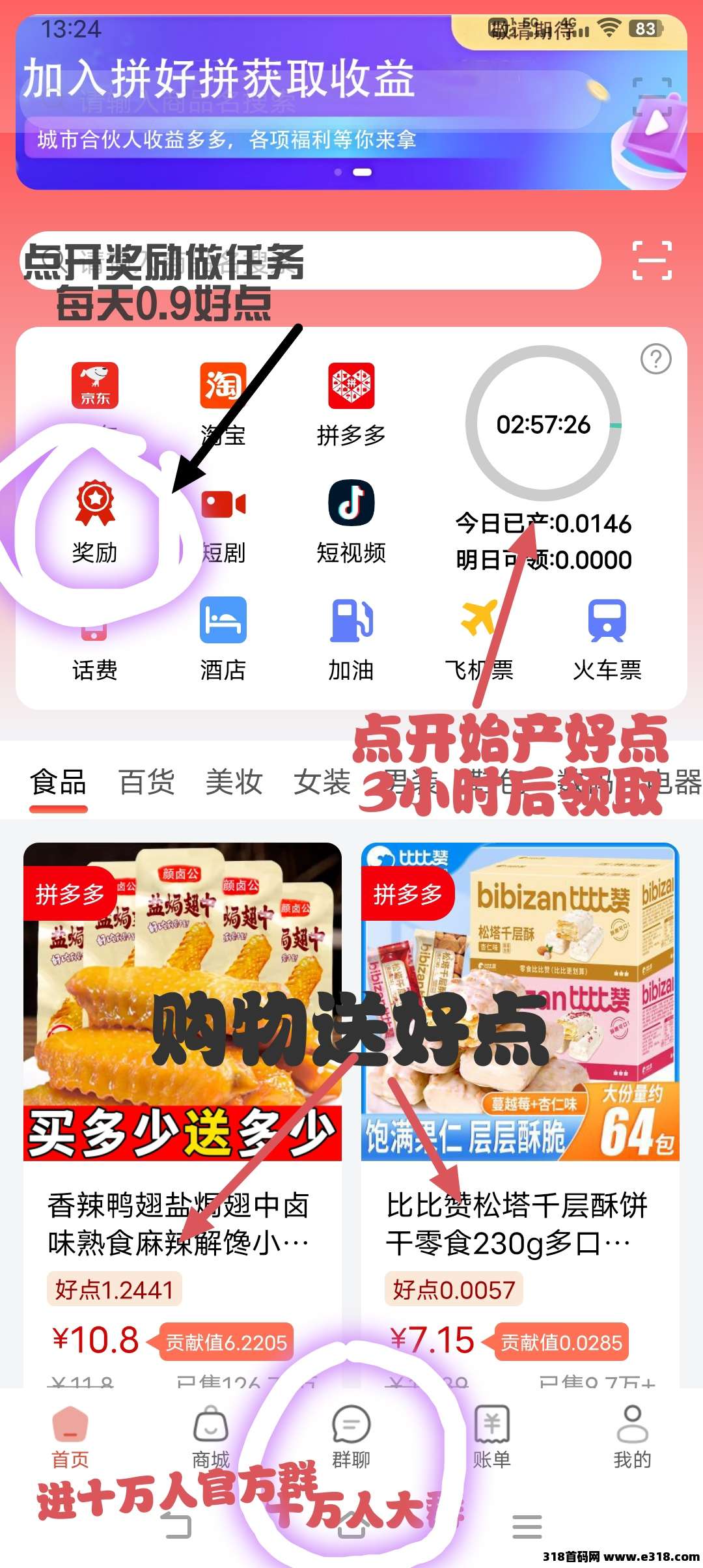 右上角点击 开始,3小时后领取“好点”当天不领第二天作废
