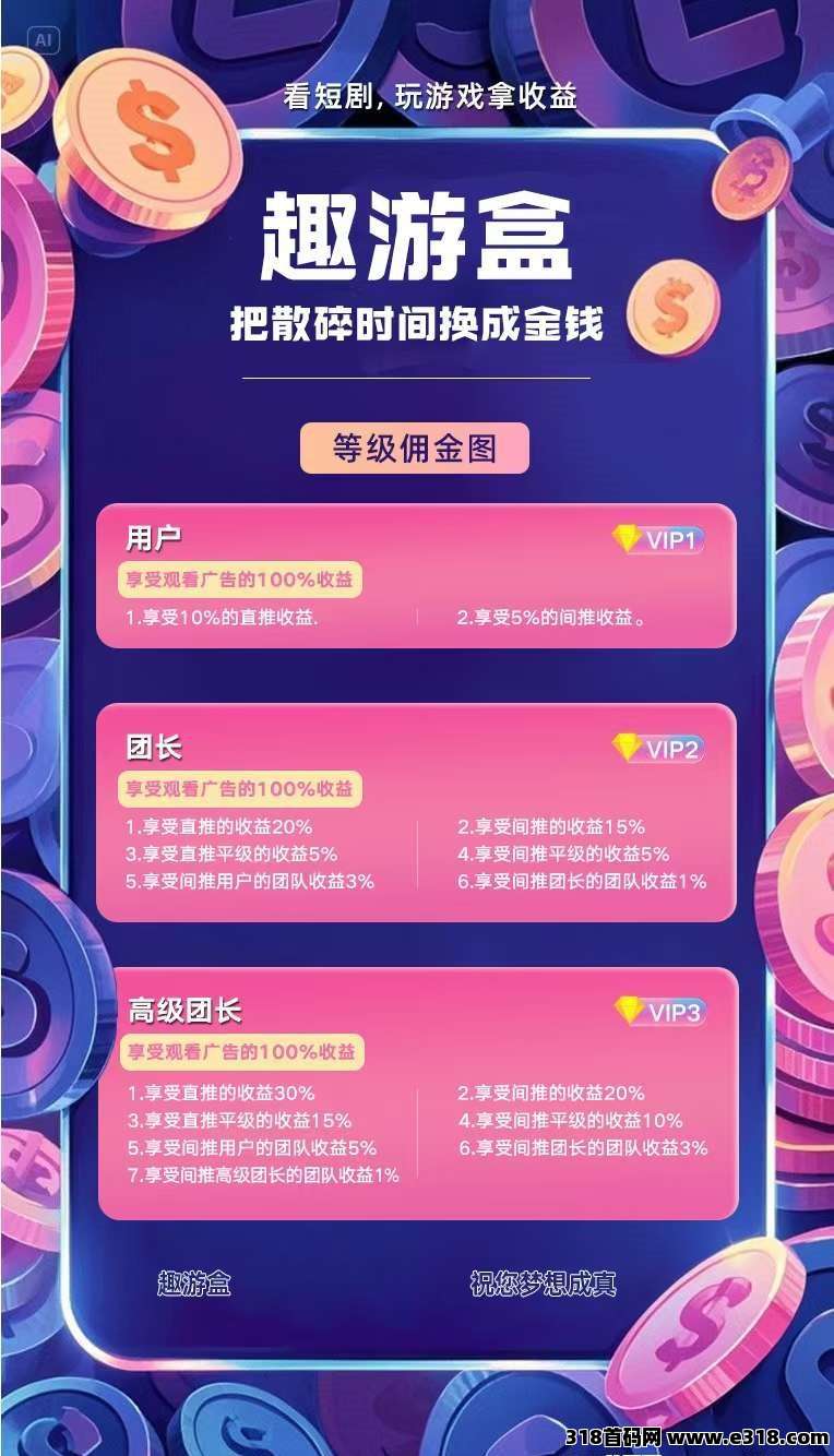 趣游盒多种变现方式,看短剧赚,抢红包赚,玩游戏赚