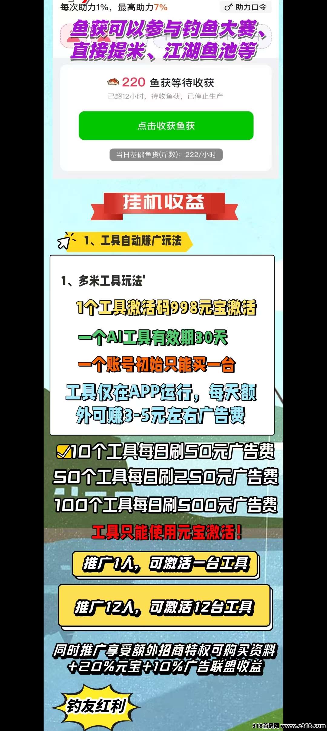《多米免费短剧》一款钓鱼题材游戏项目,支持零撸,收益可观。元宝、强化石、鱼获全靠玩家获得。