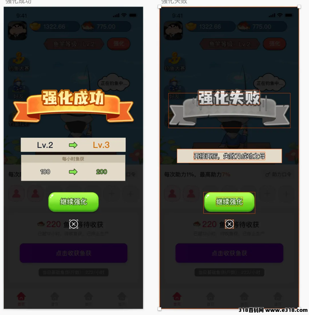 当然不是每次强化都可能成功也是会有失败所以想要收益越高鱼竿等级必须越高!