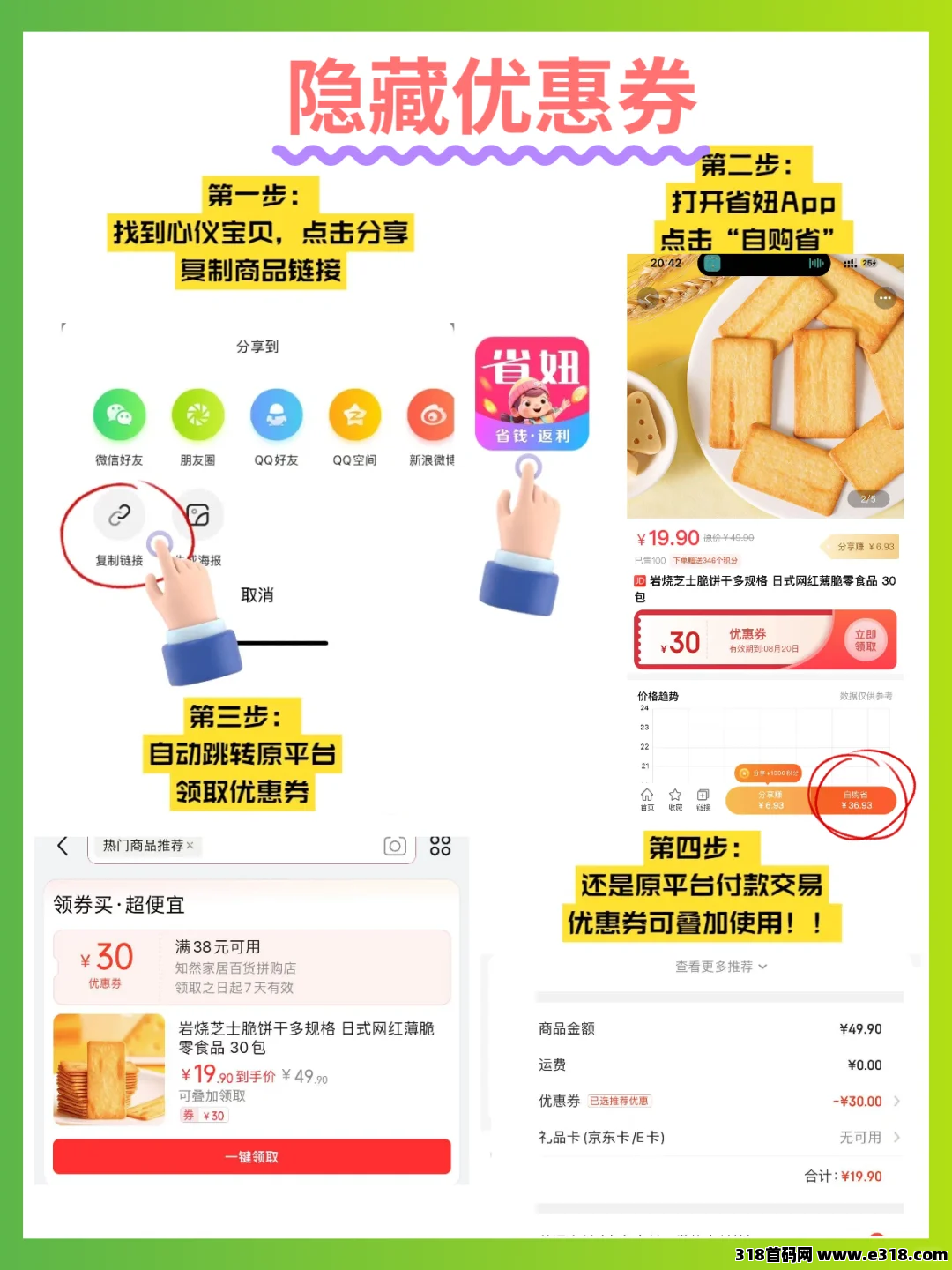 4.省钱的好方法就是使用省妞这个网上购物返利app。对于熟悉网购的人来说,淘宝、天猫、京东、拼多多、抖音、快手、唯品会商城都不陌生。通常情况下,我们会在这些商城直接下单支付购买商品。但现在,听我说,不要急着下单,而是复制或拷贝商品标题,在省妞app中进行搜索。