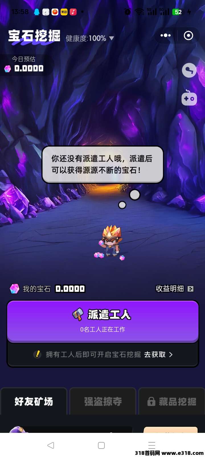 1. 点击首页【宝石挖掘】 → 选择【派遣工人】。 2. 在数字资产内选择工人,点击派遣即可开始工作。 3. 工人自动**,宝石收益实时到账
