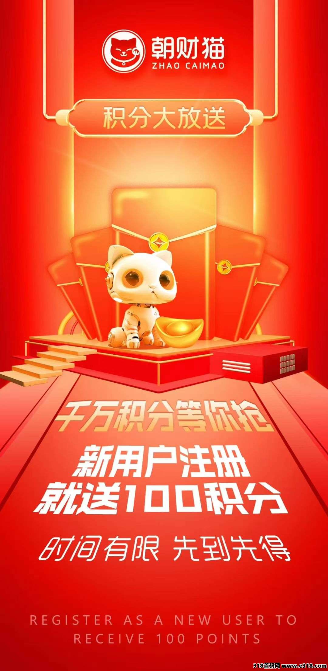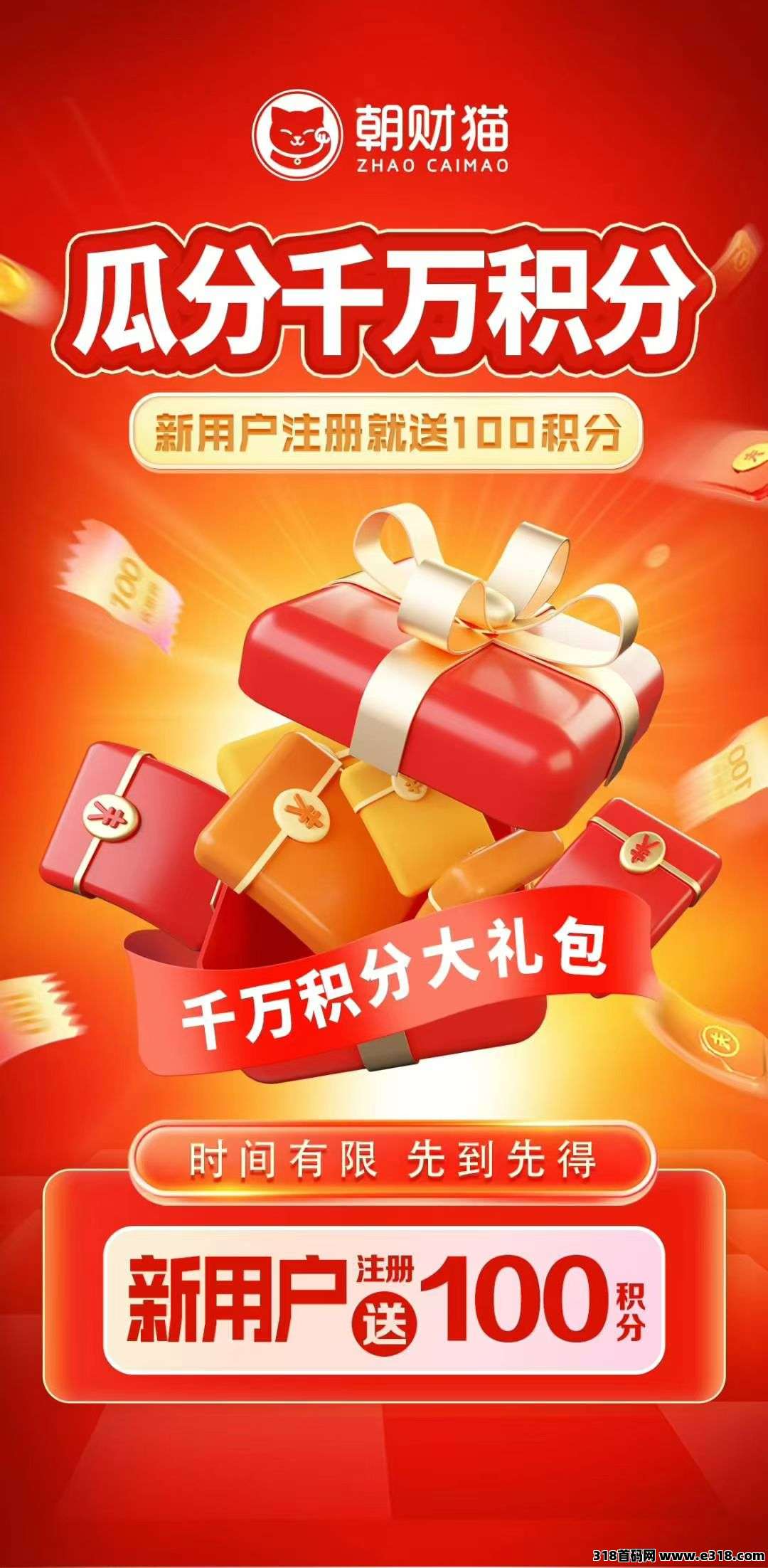朝财猫0撸,注册就送100块 ,