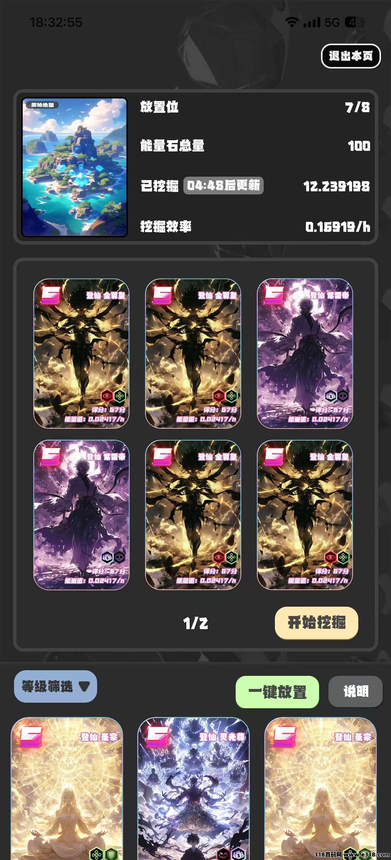这里是挖掘页面,你就看着你的能量石在猛猛涨: