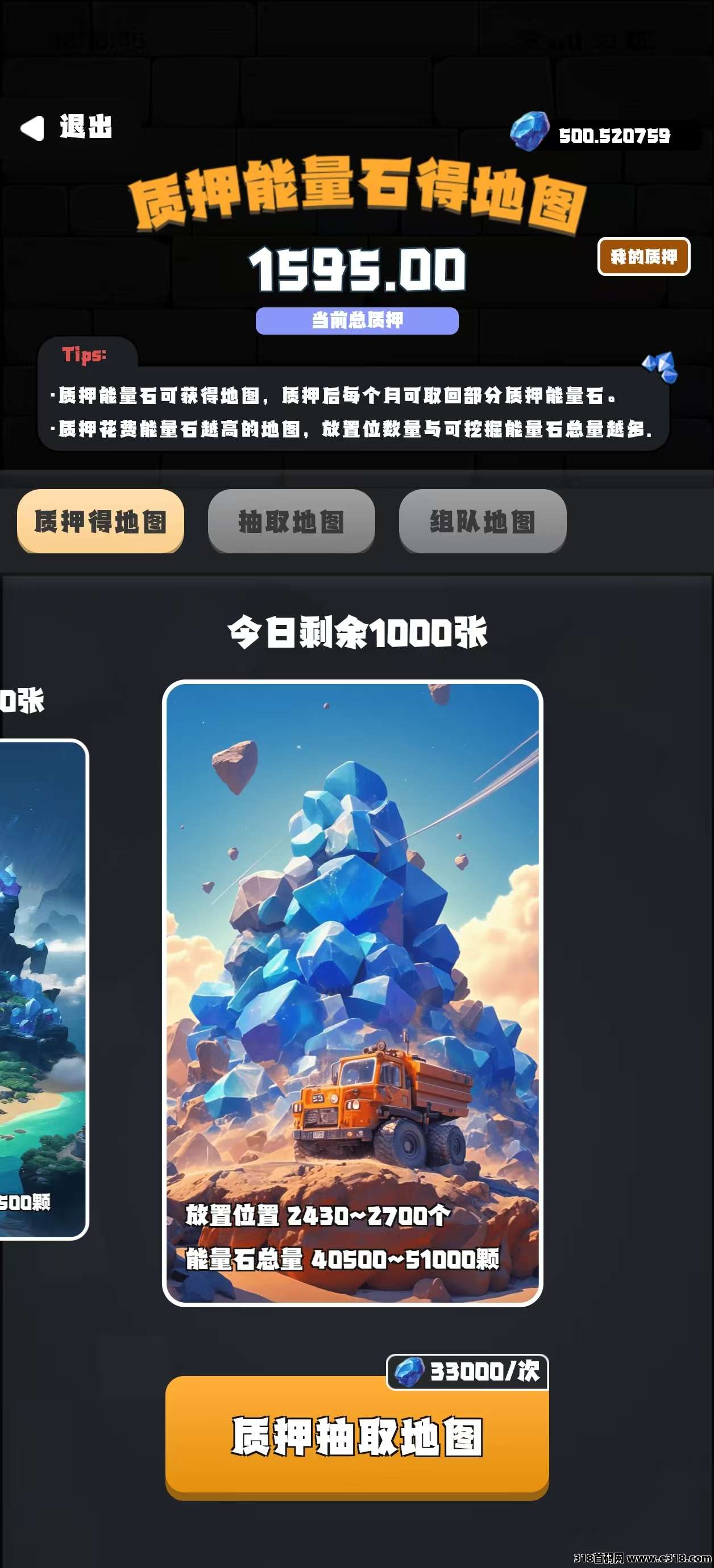 比如说:你花1000能量石去质押一张图,这张图能挖出来1500颗,然后你这1000颗还能取回来,纯赚1500颗,配合上你挖掘效率翻倍,赚吧你就