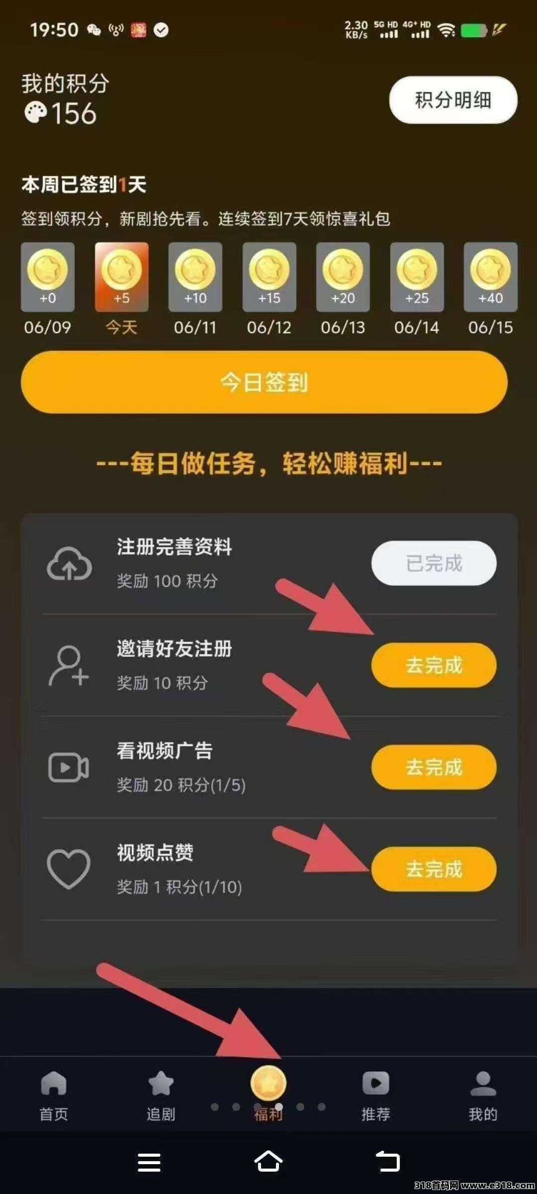 纵横短剧零撸,每天领芬红,保底收益高,每天签到做任务得积分,然后去用积分解锁短剧兑换