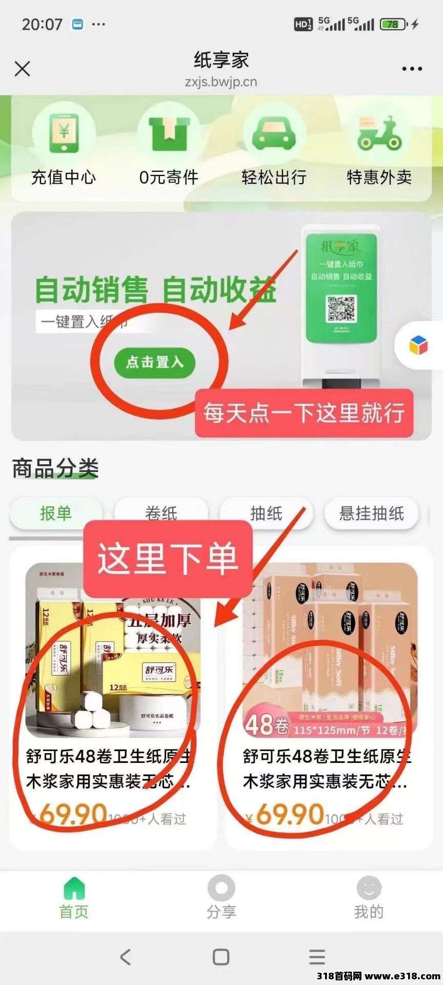 高权益;会员总共可得96卷纸巾,48卷轻柔纸巾包邮到家,另外48卷投入自动售纸机售卖享每日**2米!高收益