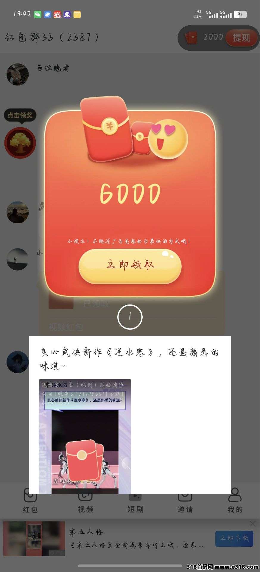新用户下载就送2000金币直接开包领,后面6000顶包再领,切记不要点提高奖励