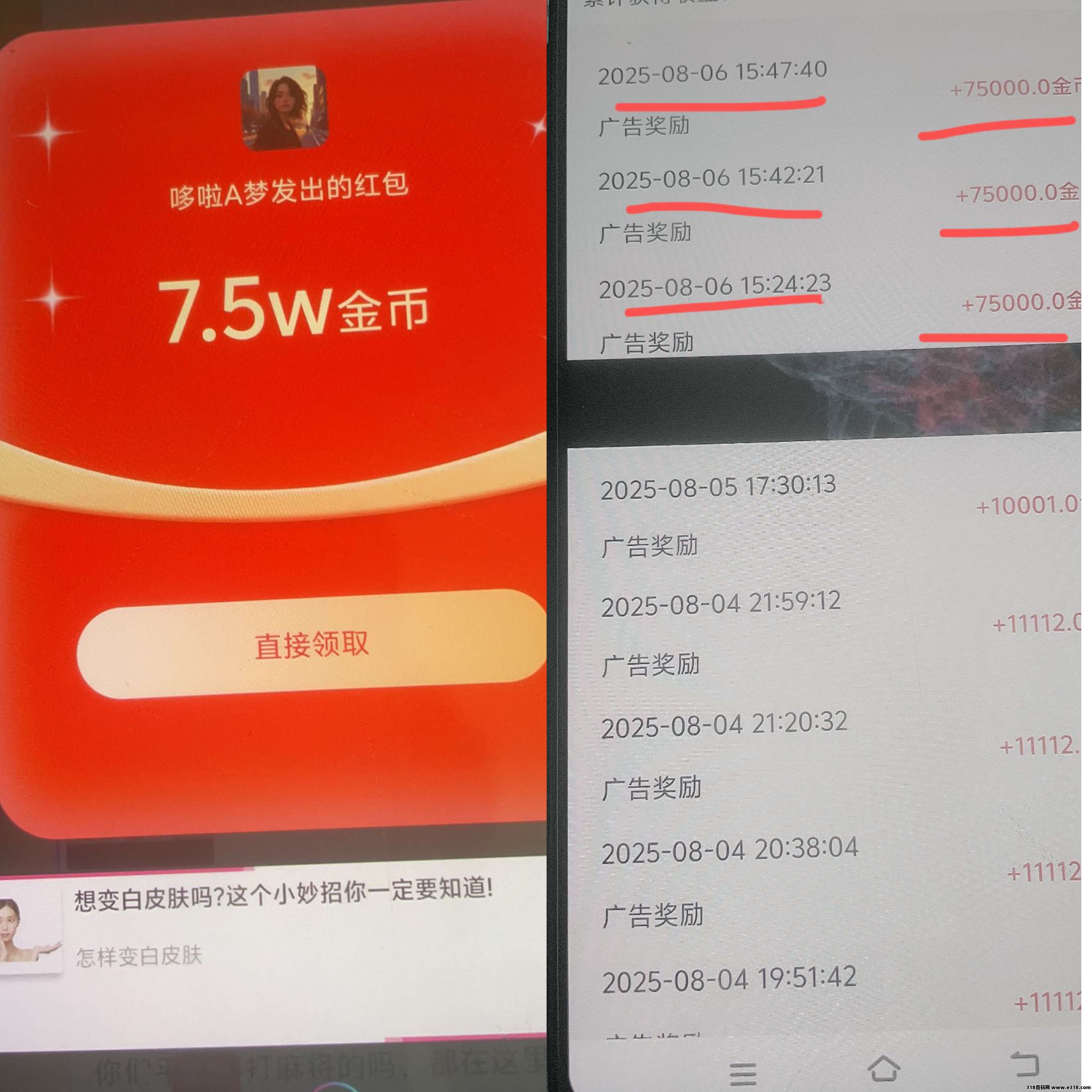 新版本短剧版块、红包版块,大放水,收益翻三倍,看一轮短剧广告必得3~30米,无线看,红包板块顶包1.11米,每天轻松收益50+