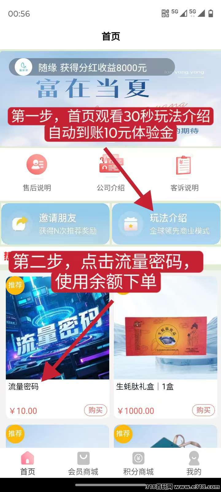 1,在首页点击“玩法介绍”,观看30秒视频后