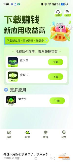 首码萤火虫,零撸不养机,看广告赚,保底收益高,日收益10-30米,有老铁反馈高的都能达到50+