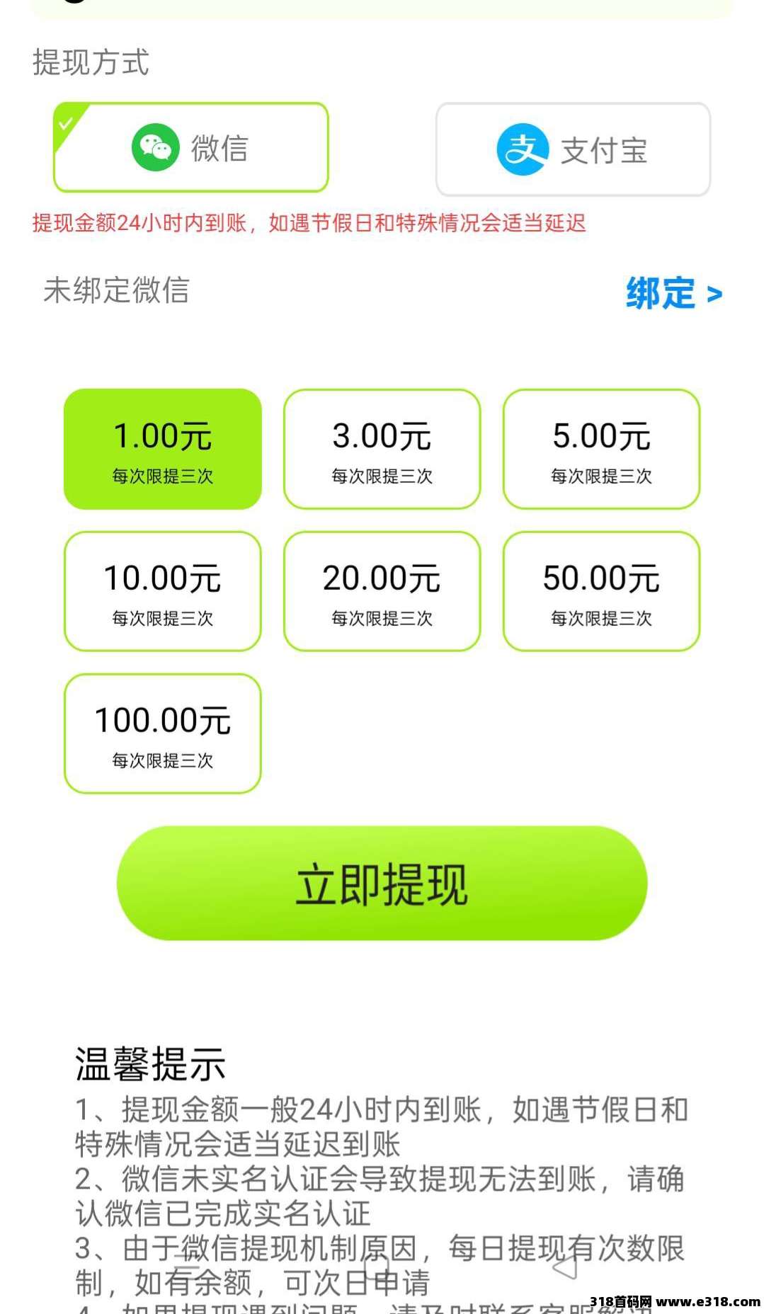 如果进去没任务就问客服或者过1-2天在上app看 亲测提现秒到,1米起提