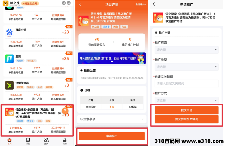 而且选择正确的一级服务商能极大提高注册转化率和收益,蜂小推是一个非常不错的选择。通过蜂小推参与夸克网盘推广,流程简单且高效:关注蜂小推公众号→下载APP→用邀请码000000注册→找到“悟空搜索”项目→提交申请→审核通过后获取专属推广链接,轻松开启推广。