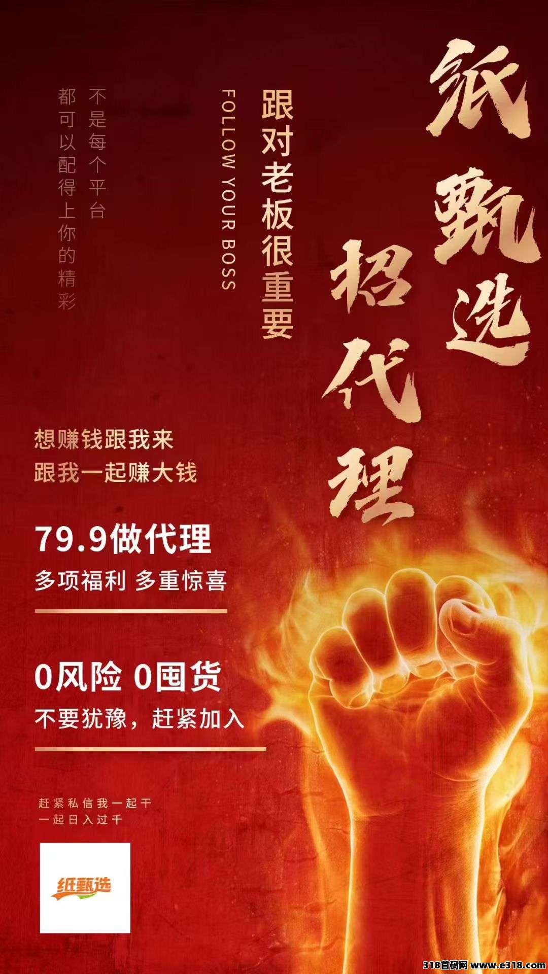 纸巾作为生活必需品,市场需求巨大且稳定,纸甄选紧抓这一快消品市场机遇,致力成为行业领导者。无论是日常自用还是代哩推广,都是不错的选择。79.9圆的小投入,为自己开辟一条稳定收入的新路,赶快加入纸甄选,抓住这次财富机会!