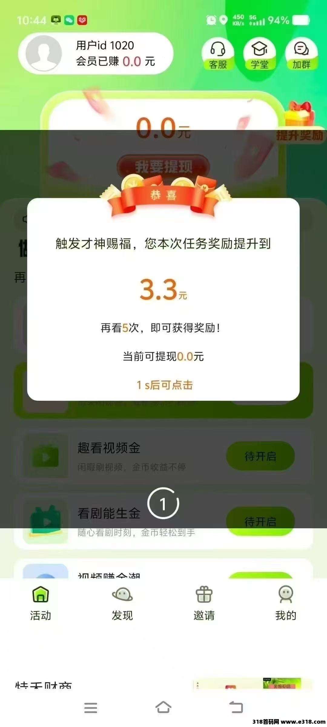 萤火虫是一个看广告赚钱的app,类似之前发过的简玩
