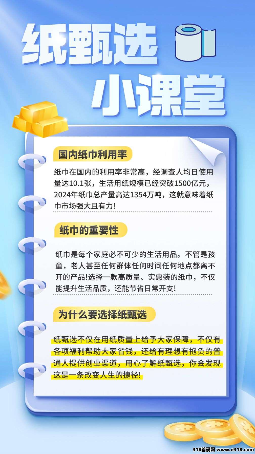 纸巾作为日常生活中的快消品,市场需求巨大。《纸甄选》抓住了这一商机,做到了低门槛、高回报。无论你是学生、上班族还是宝Ma,只要有手机,就能轻松参与。加入《纸甄选》,你不仅能享受优惠购物,还能通过分享和推广赚取收溢,长久稳定,适合长期操作。