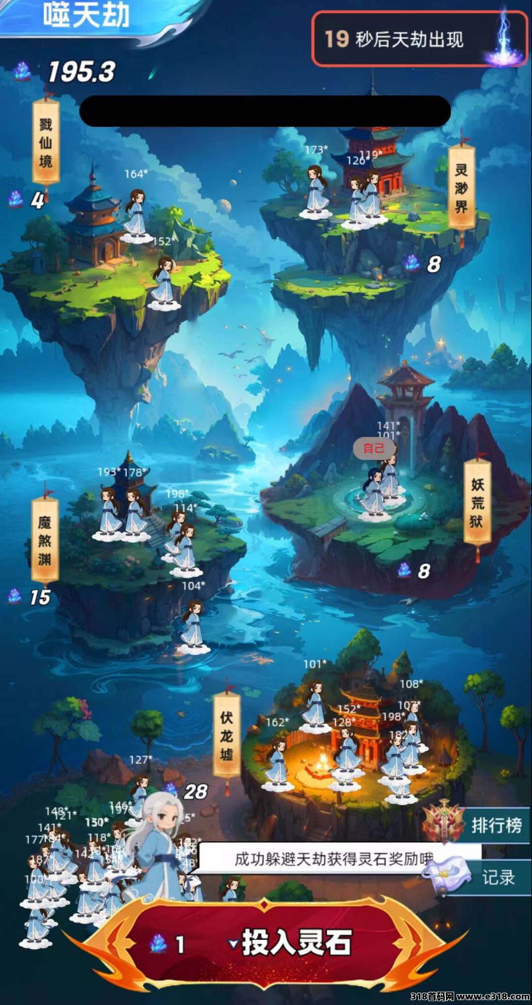 每天早8点根据所有玩家参与的天道点瓜分灵石