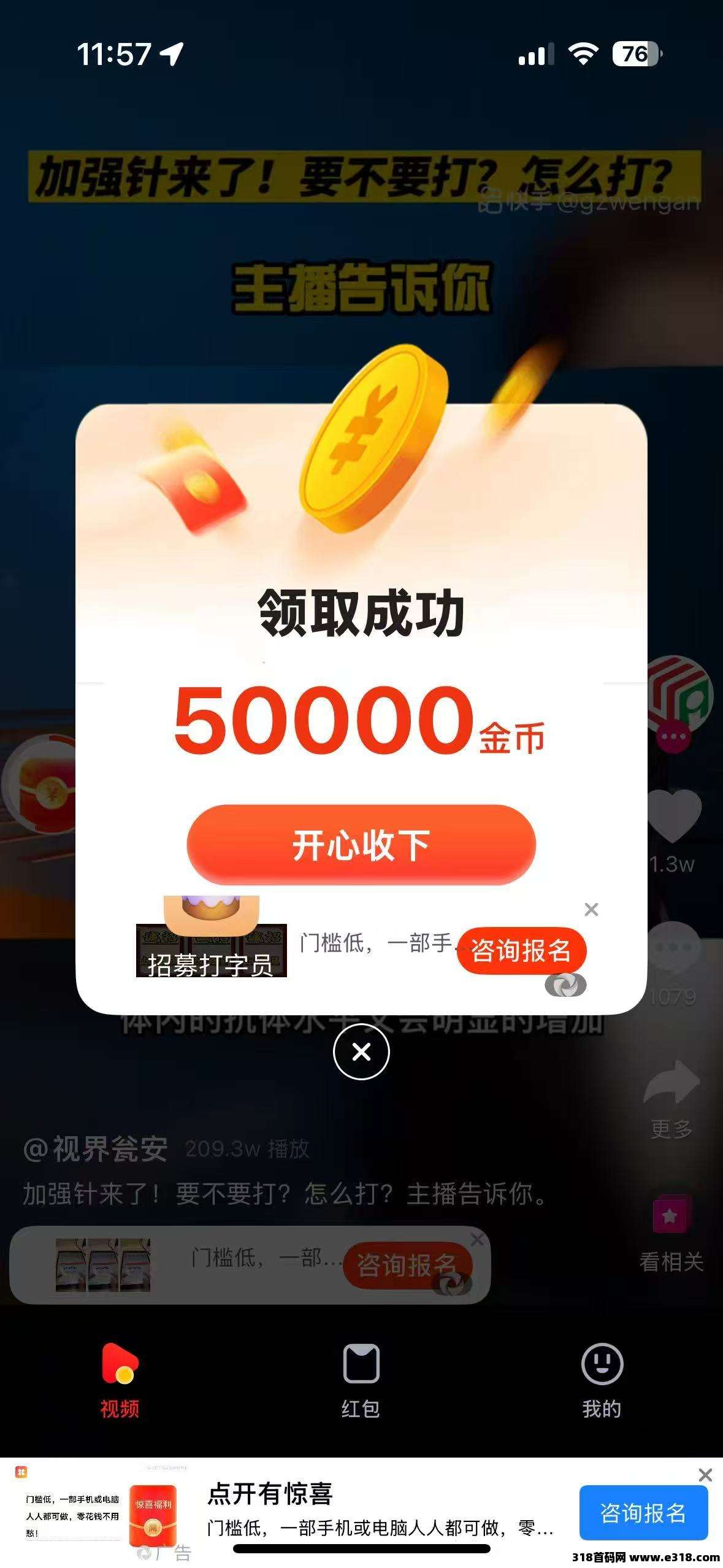 用户补贴,返奖大放水,看一个广告0.2-0.5米新项木,最强0撸!