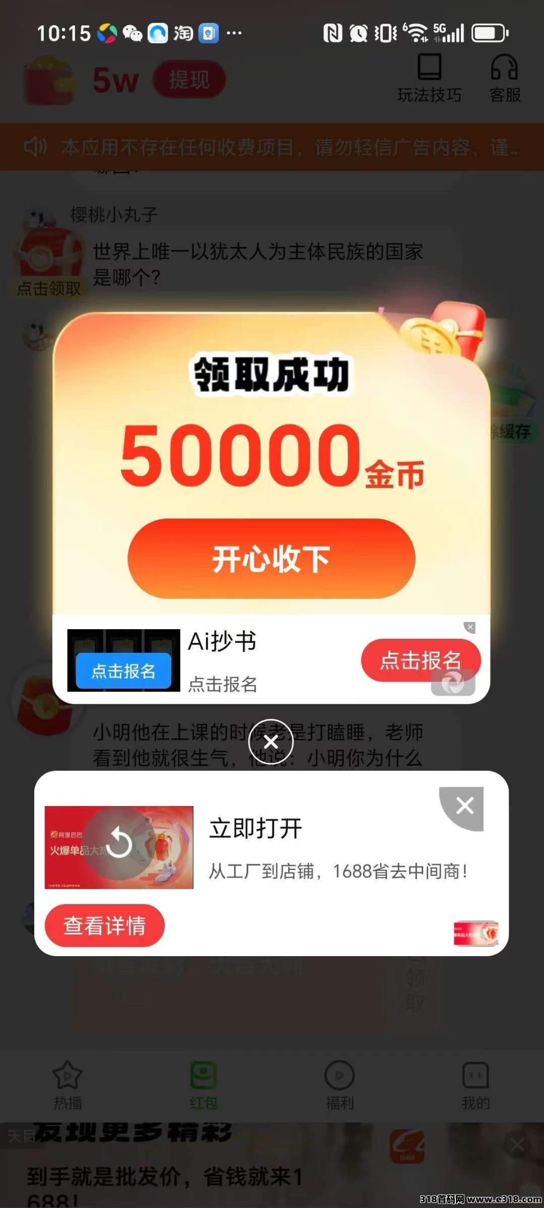 菜包剧场玩法跟往常一样,顶包50000,红包到了50000再领,不到不要领,