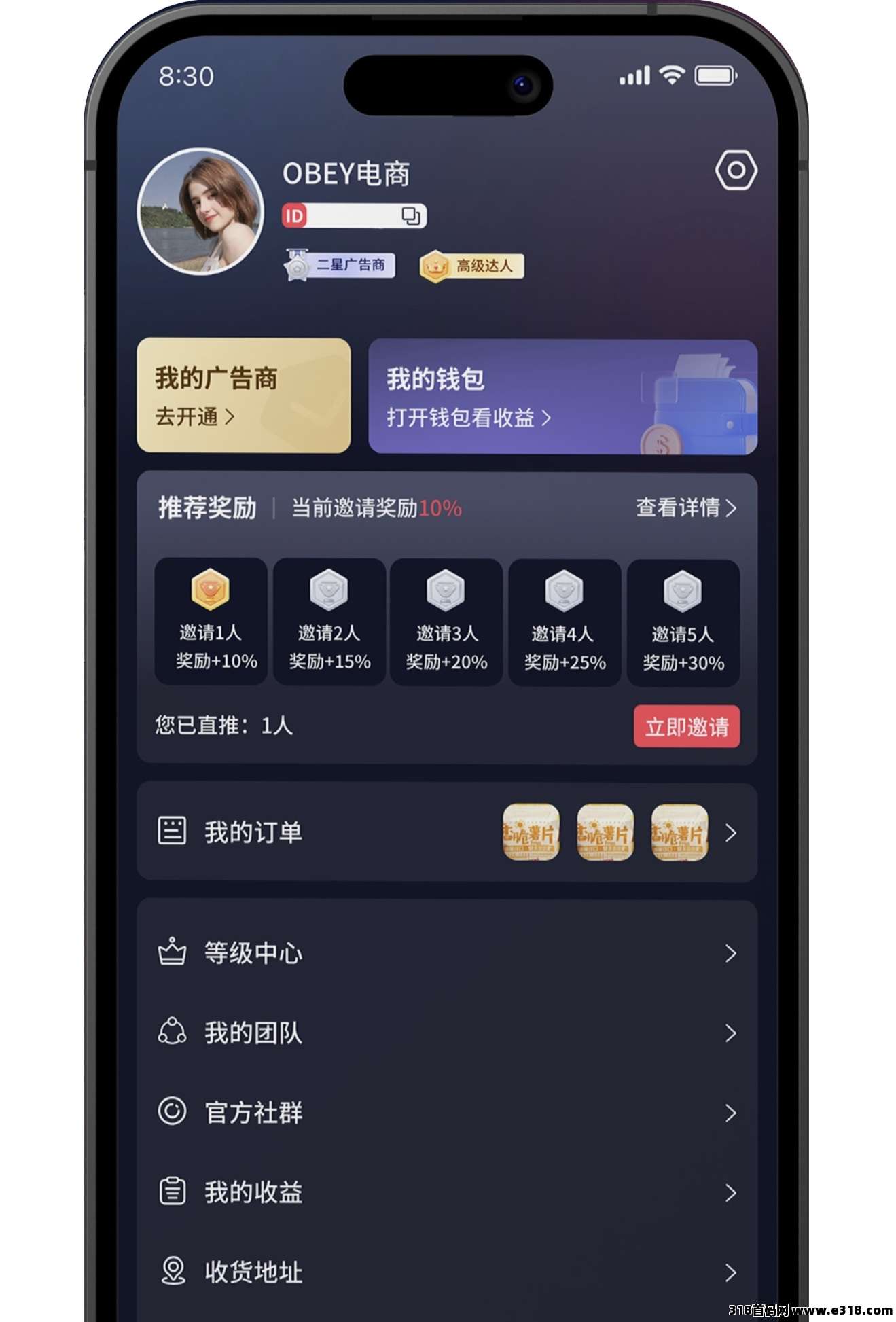 1:直推5人后,直推奖励统一按30%计算,(本人广告商级别不能低于下级的广告商级别,否则直推30%奖励将进入待领取保留7天)
