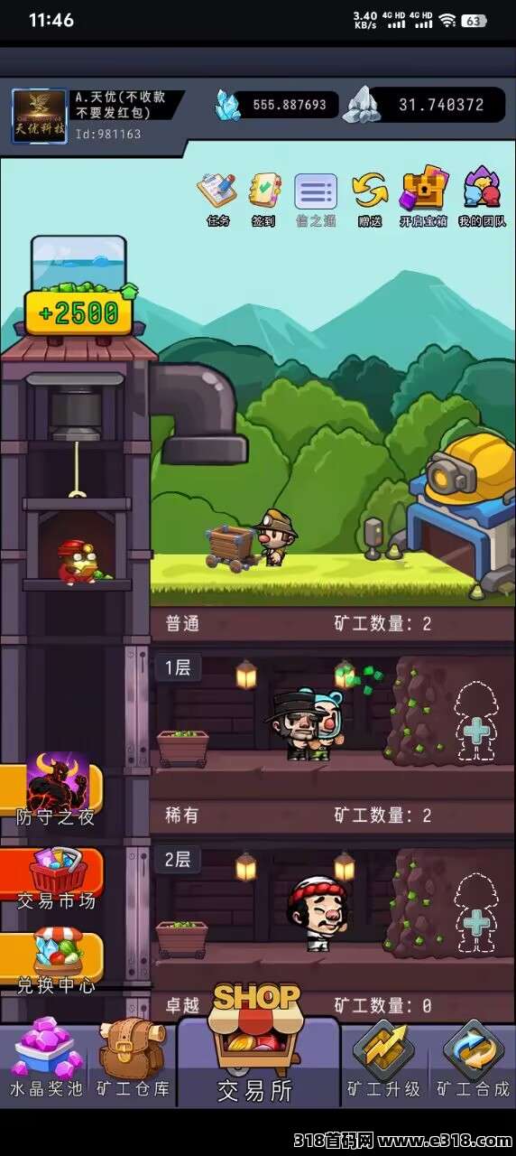 游戏里有普通、稀有、卓越、史诗、传说、神话等不同品质的矿工,像神话矿工德普,日产量超 21 万矿石 ,战力爆表!不同矿工日产量和有效期各异,有的擅长持续稳定产出,有的则是爆发型 “**能手” ,搭配组合,挖掘效率直接拉满,让你矿石挖到 “手软” 。矿石可瓜分水晶,水晶转赠变现。