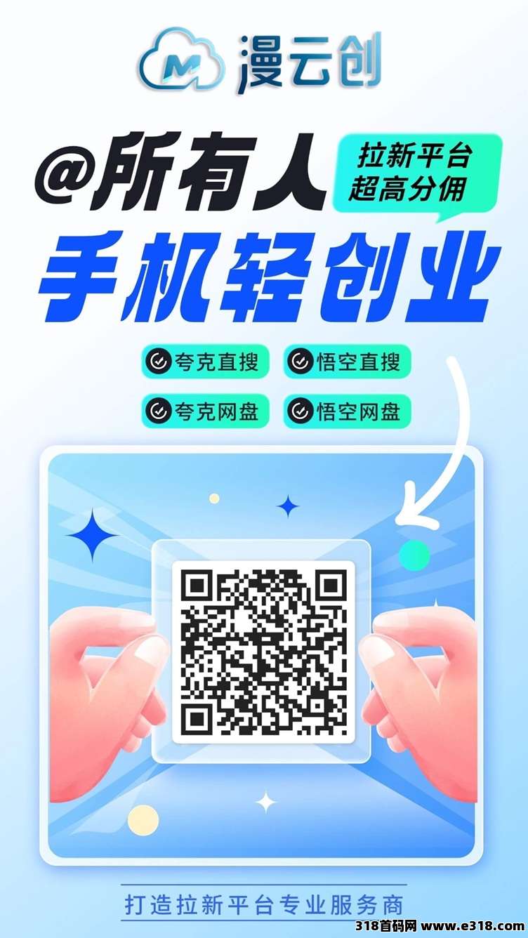 漫云创首码,全新上线的网盘拉新平台,自带训练营,漫云创是一个非常好用的网盘拉新平台,已经上线了多个拉新项目,像主流的网盘平台、抖音极速版、即梦ai等等拉新项目全都有。