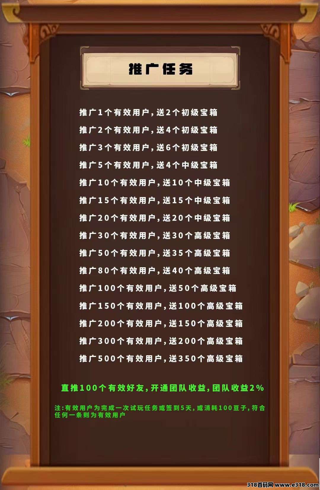 致富宝授权,每日无广告签到得宝箱,宝箱旷工,旷工可升级升阶,旷工采集旷石,矿石参与瓜分获得水晶转赠,和超级链接老虎金币一样,前期润高,