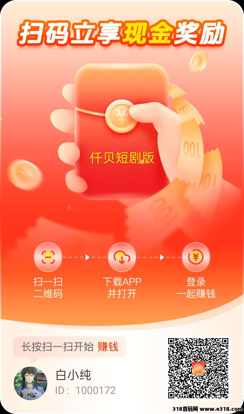【仟贝短剧】广告赚,零撸保底收益高,1w金=1米。秒提V