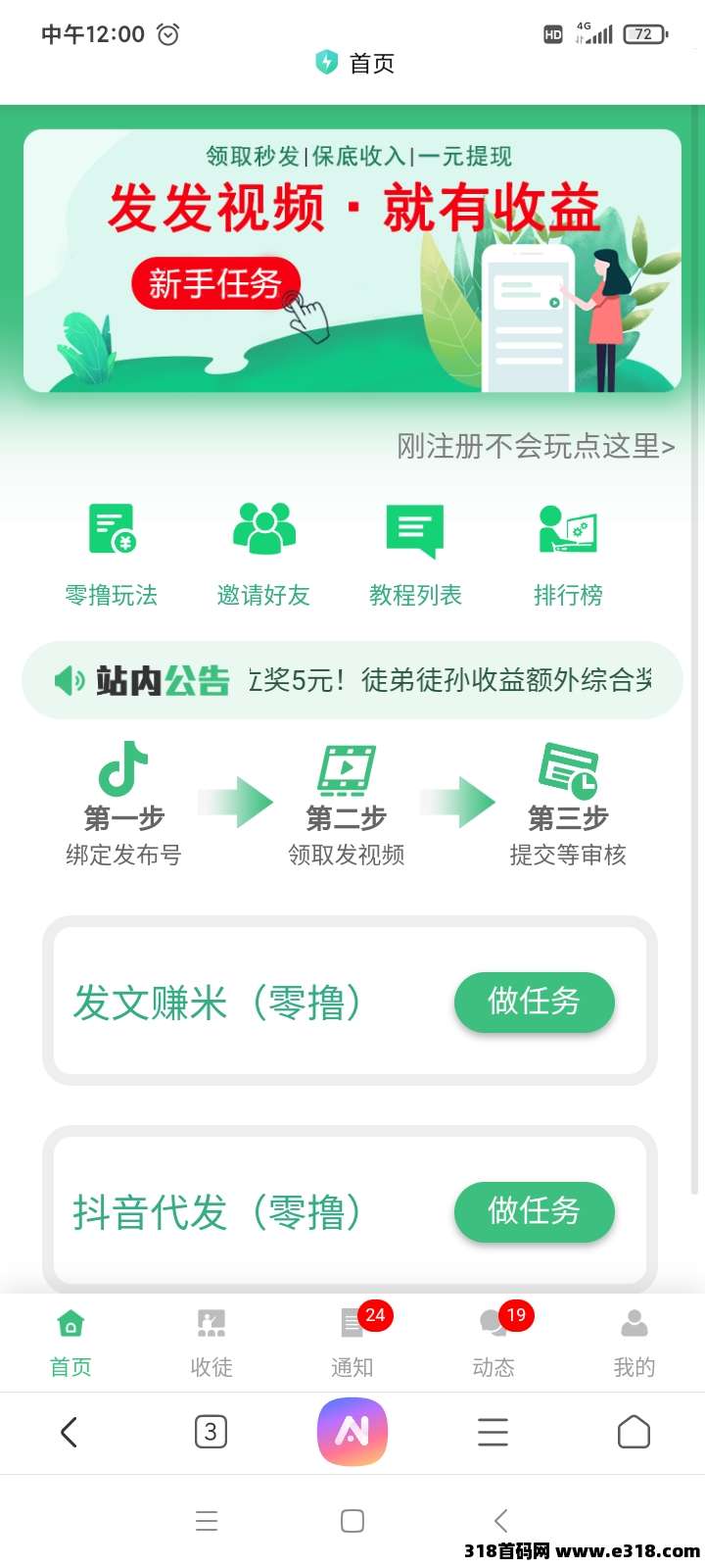 3、首次做任务请看首页【零撸玩法】的发布教程。