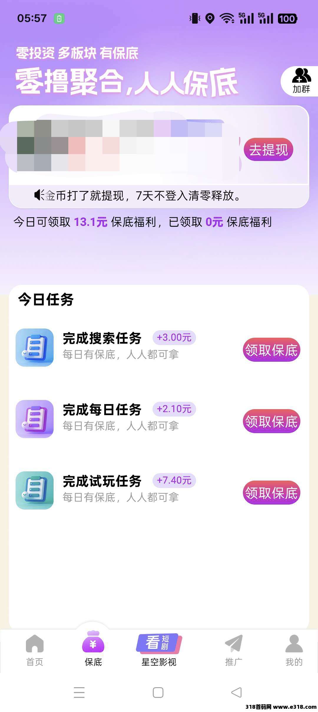 任务下载0.3~到几块①个,广告语音红包,游戏娱乐赚钱等都是几毛到几块,零撸单机30-300+, 0.3起体现 秒到账 秒到账