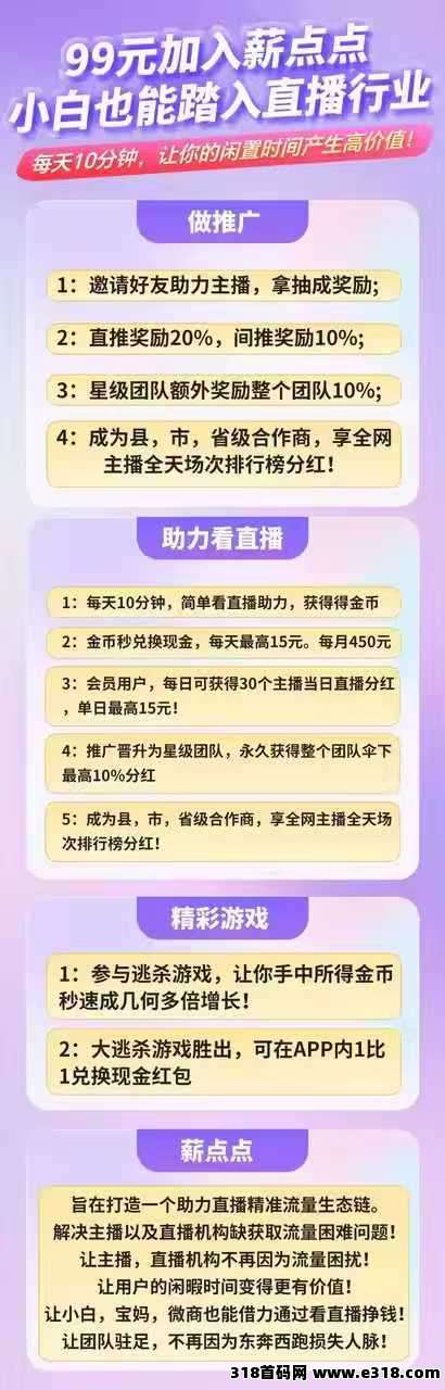 (每天助力直播):多号多赚,团队无限袋模式!