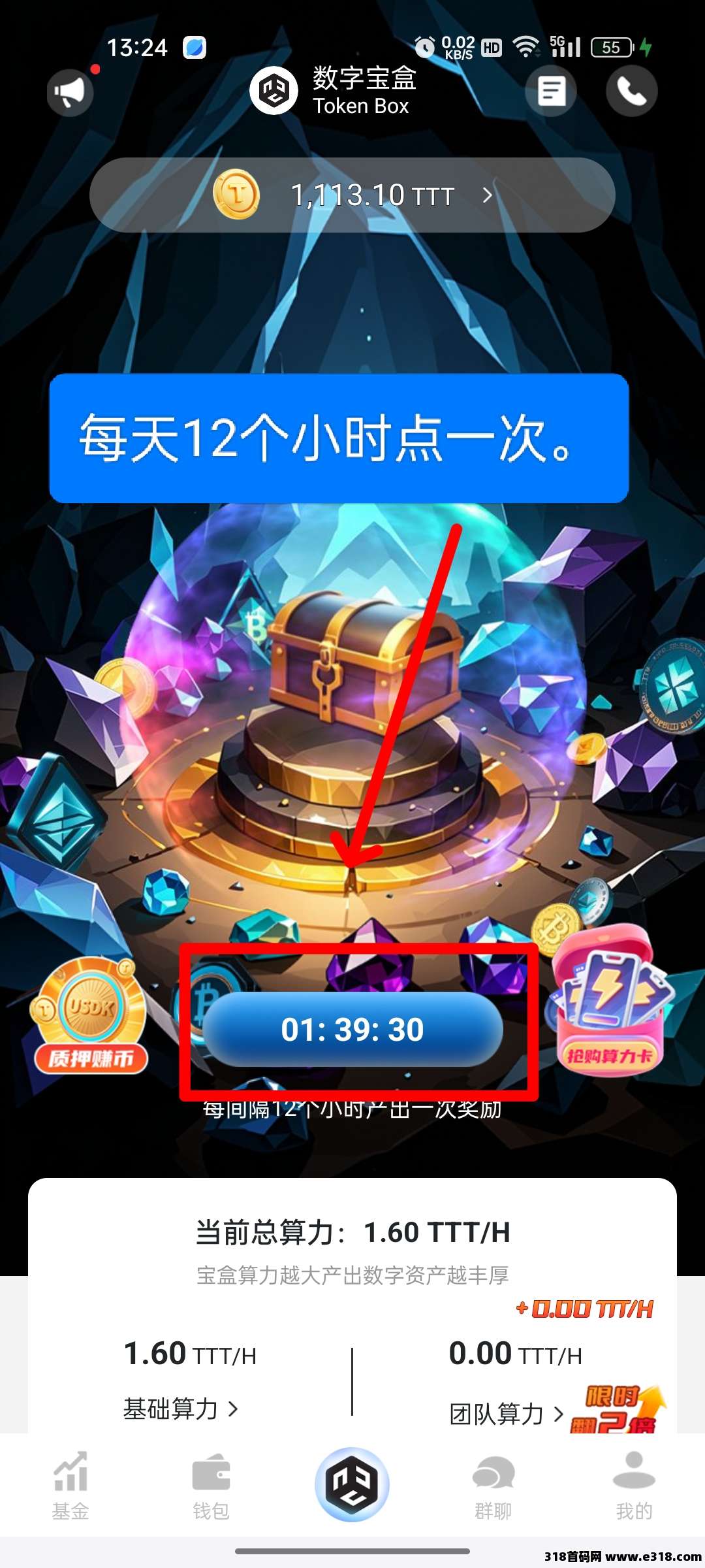 数字宝盒首码 零撸大肉,免費挖平/台币TTT币,目前1小时挖3.2个,一兲76.8个,无广告,每12小时一键开启即可领取。