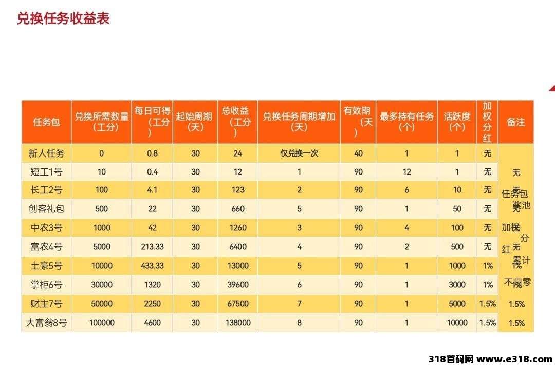 3.不推广只**,用钱去赚钱: 通过**,用资金赚取工分,适合有资金但不想参与推广的用户。