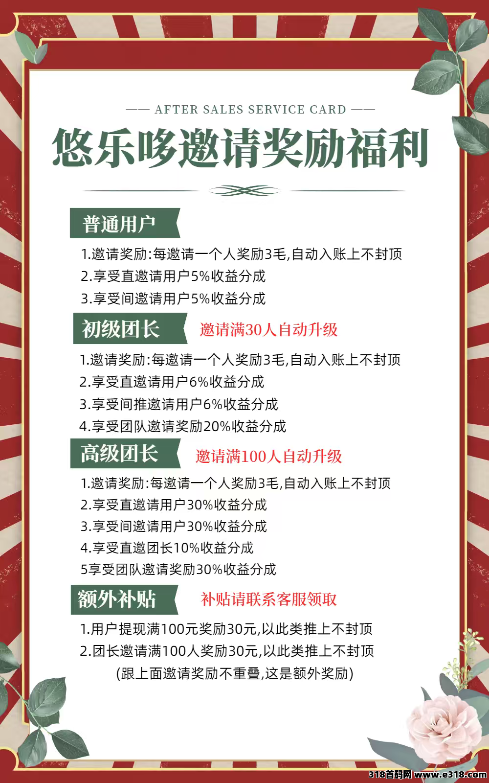 用户福利邀请一个用户注册直接送0.3元一个(以此类推,上不封顶)