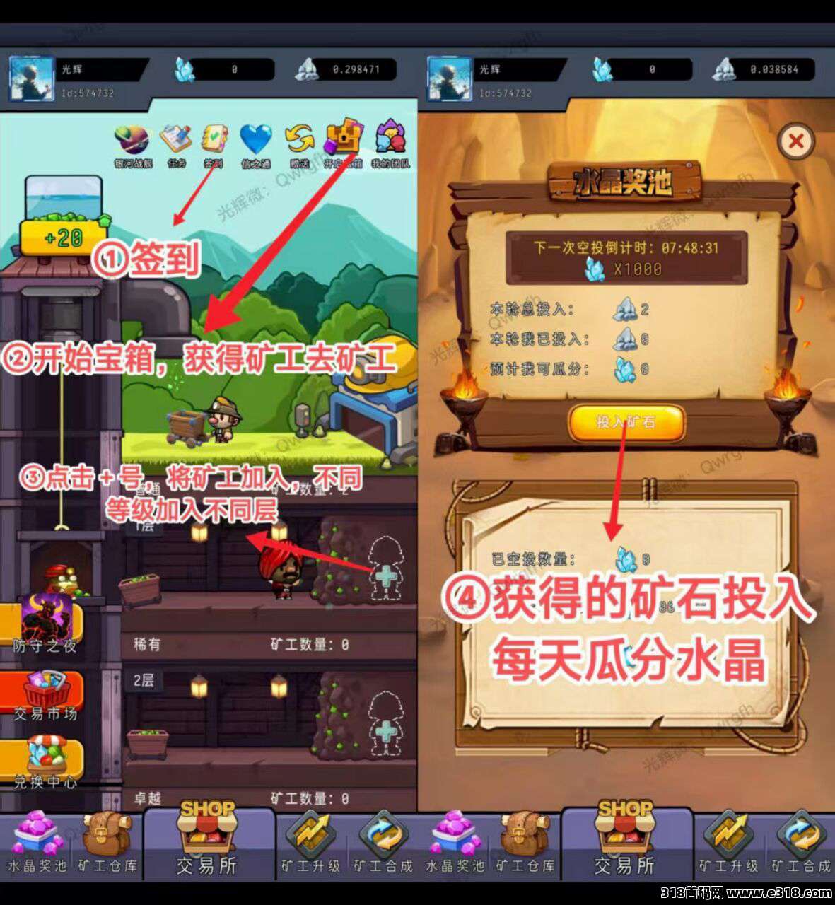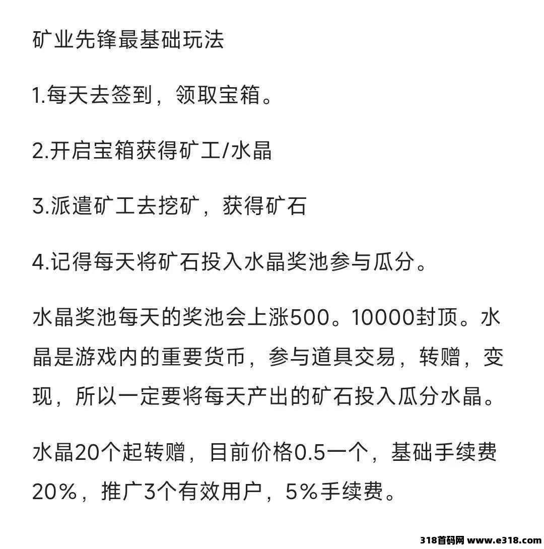 致富宝授权,宝箱旷工,旷工可升级升阶,旷工采集旷石,矿石参与瓜分获得水晶转赠,和超级链接老虎金币一样,前期润高,保底1.2米